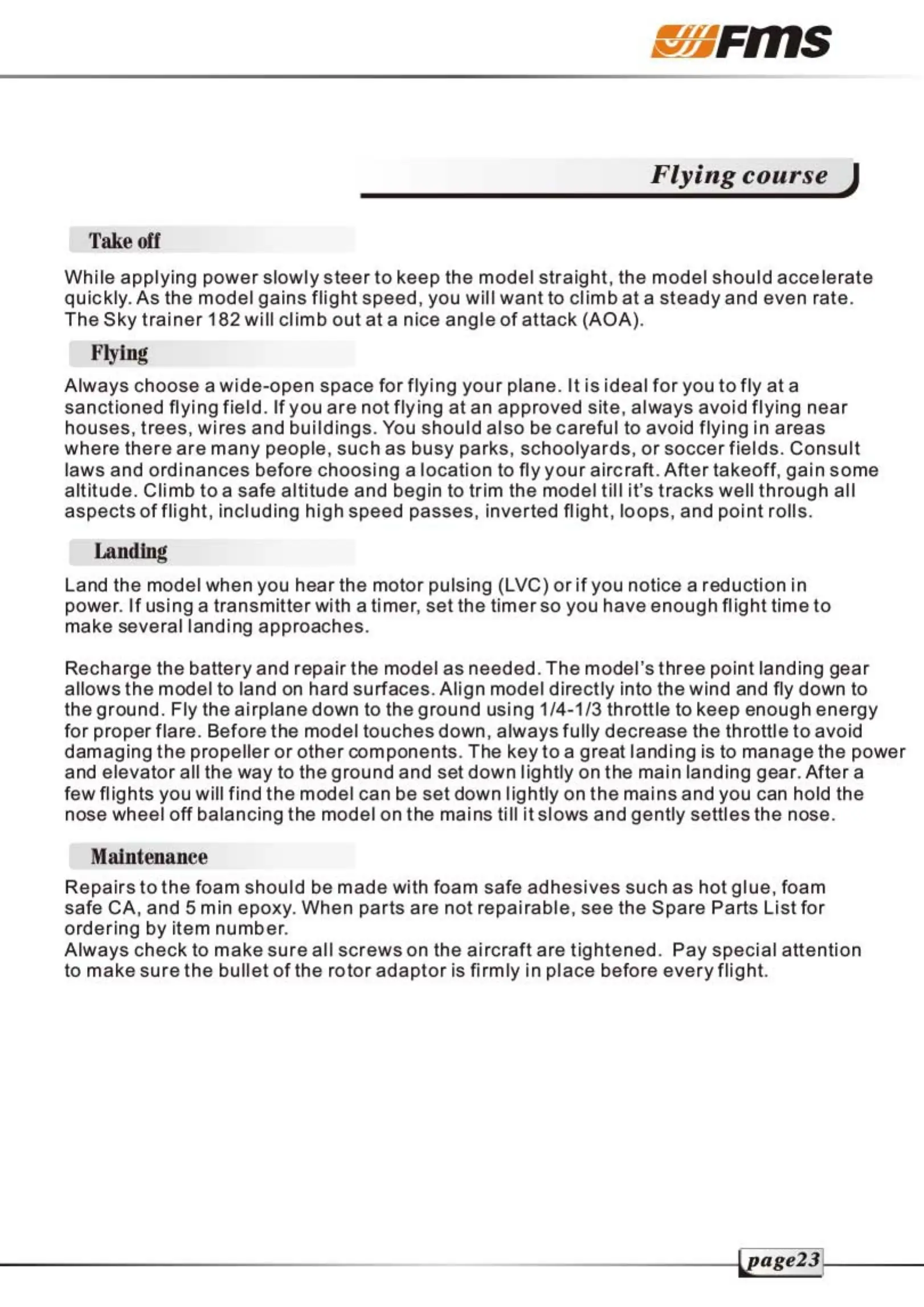 FMS Sky trainer 182 - Take Off and Flying Techniques; Landing Procedures