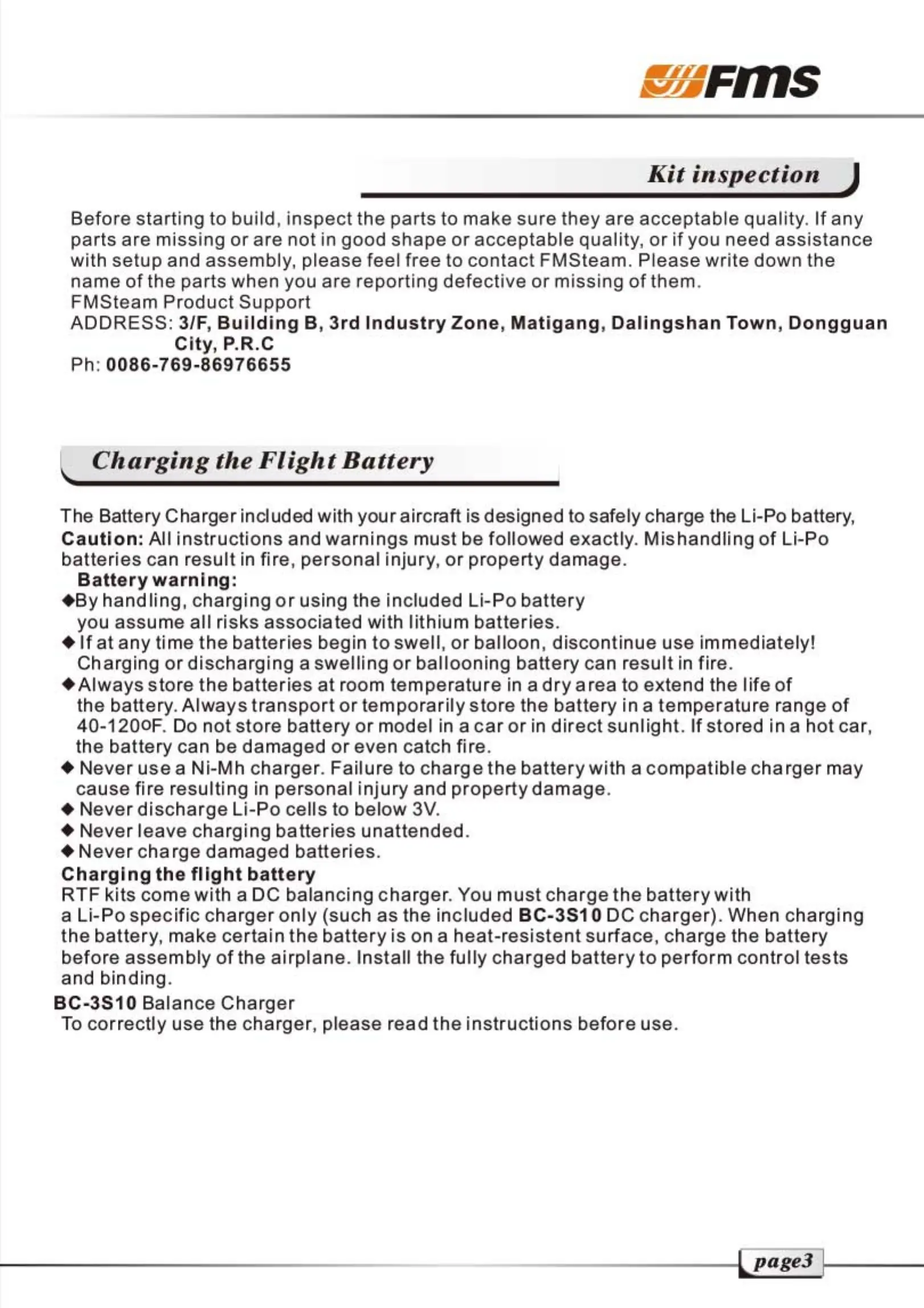 FMS Sky trainer 182 - Battery Charging and Inspection; Flight Battery Charging Safety
