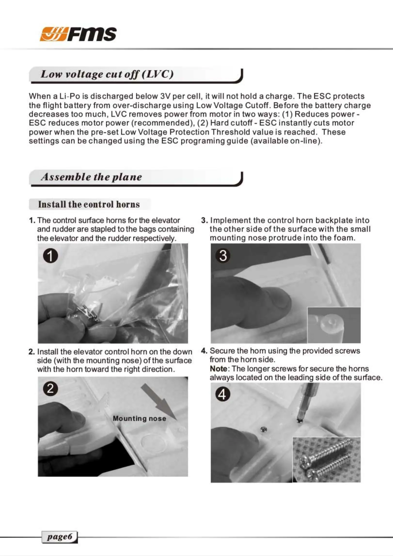FMS Sky trainer 182 - Aircraft Assembly Procedures; Low Voltage Cutoff (LVC)