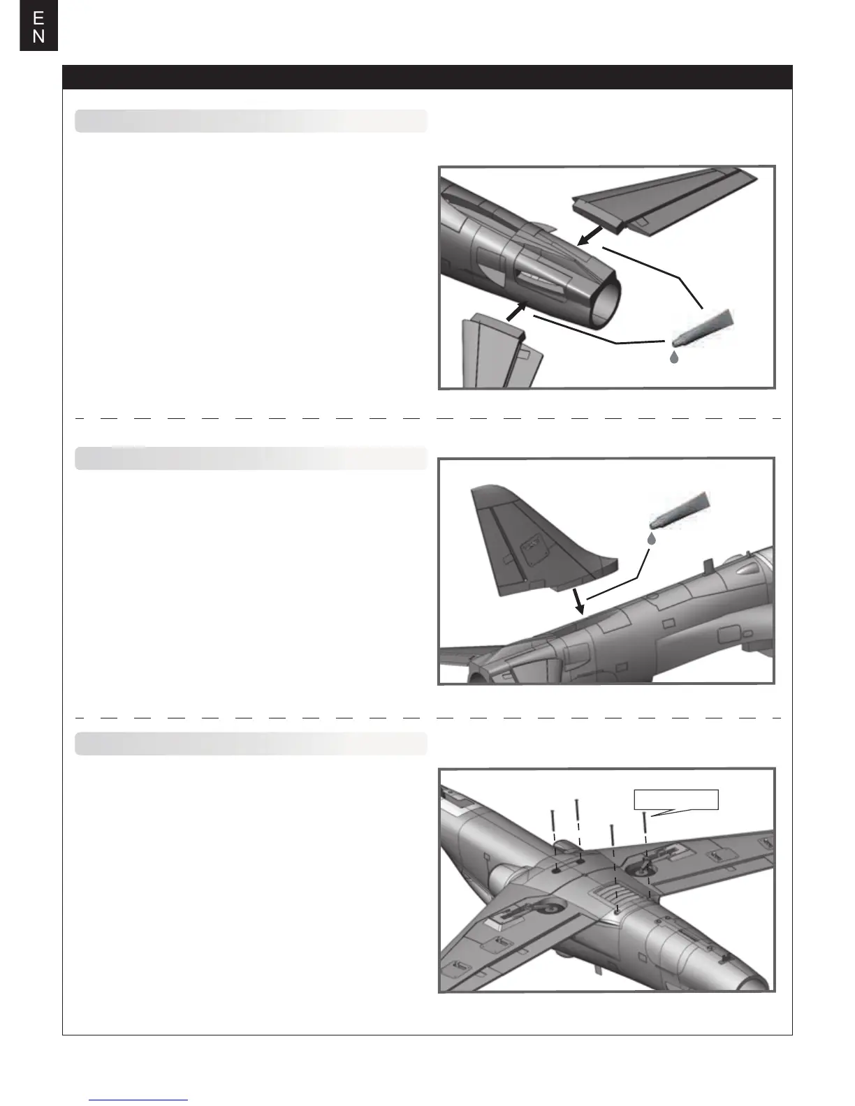 in the fuselage. Install the horizontal stabilizer to its housing in