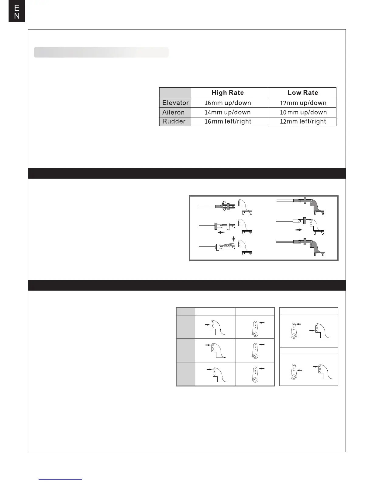 The suggested control throw setting for the T-45 are as follows (dual rate setting):