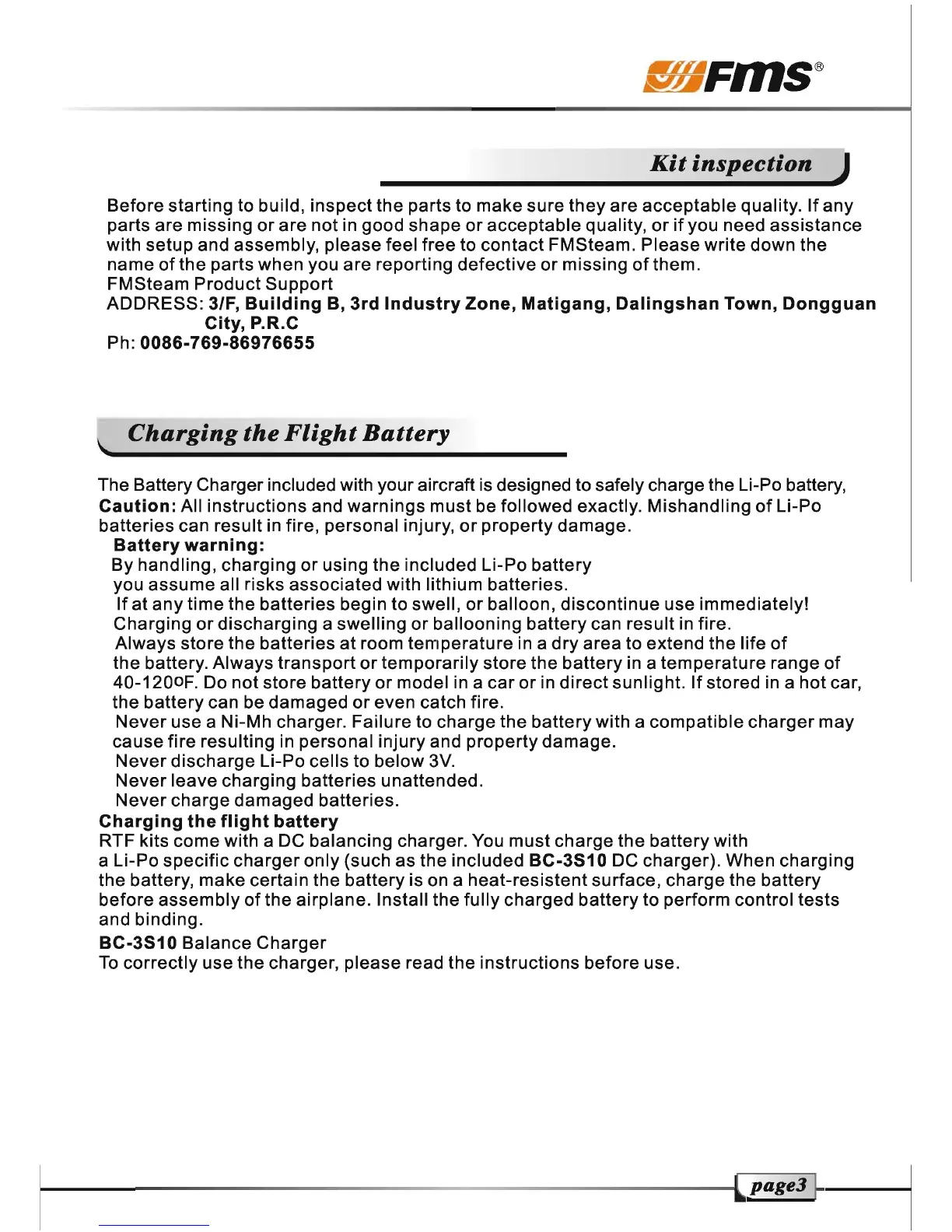 FMS T28 Trojan - Pre-flight Checks and Battery Charging; Kit Inspection Before Assembly; Flight Battery Charging Procedures