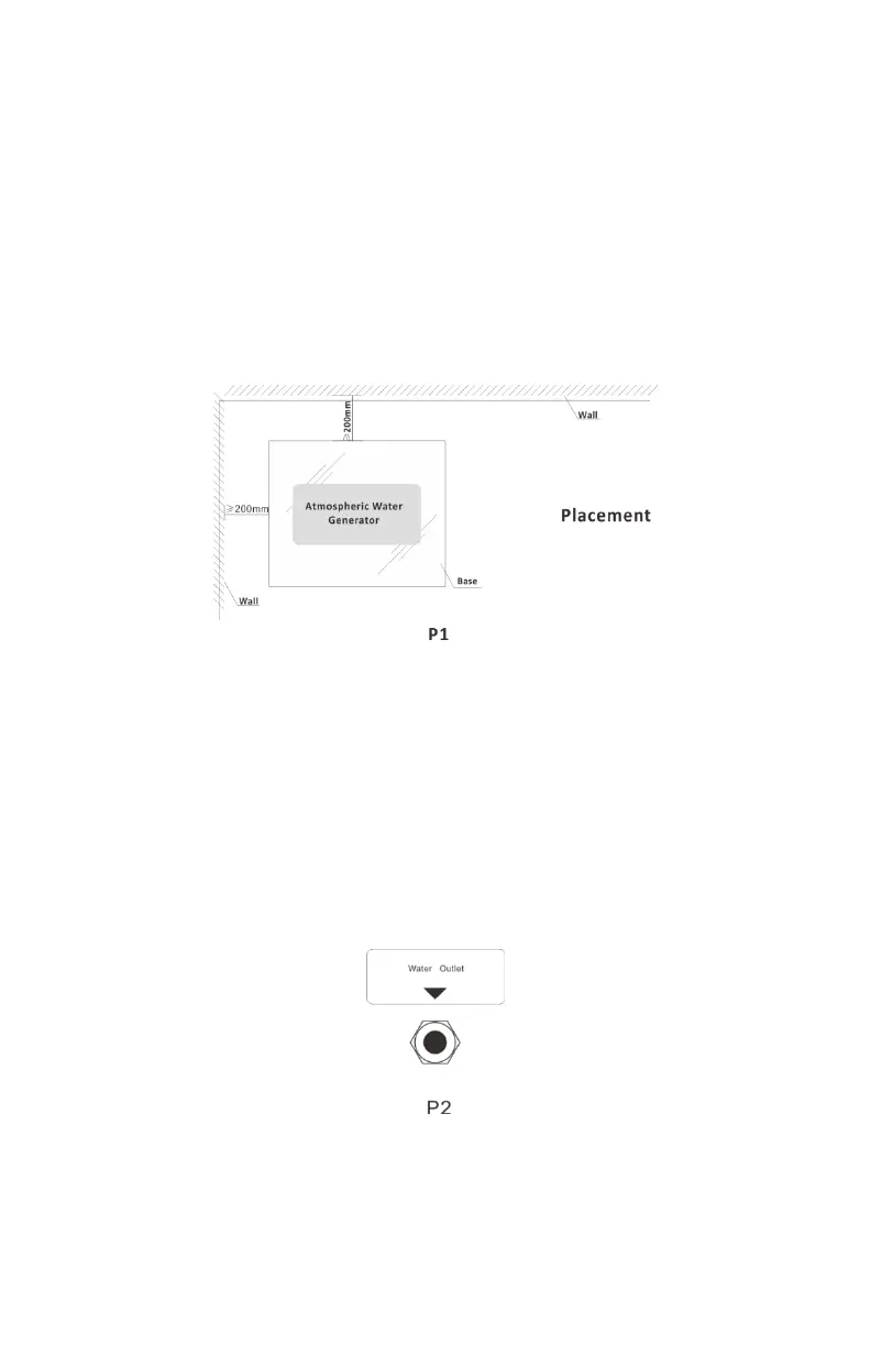Ensure a minimum gap of 200 mm between machine and walls to