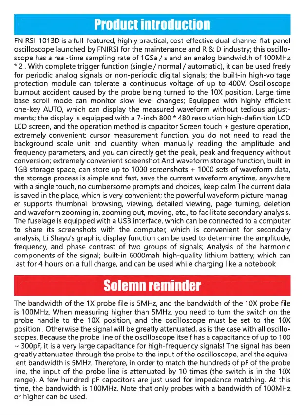 Fnirsi 1013D - Product introduction; Solemn reminder