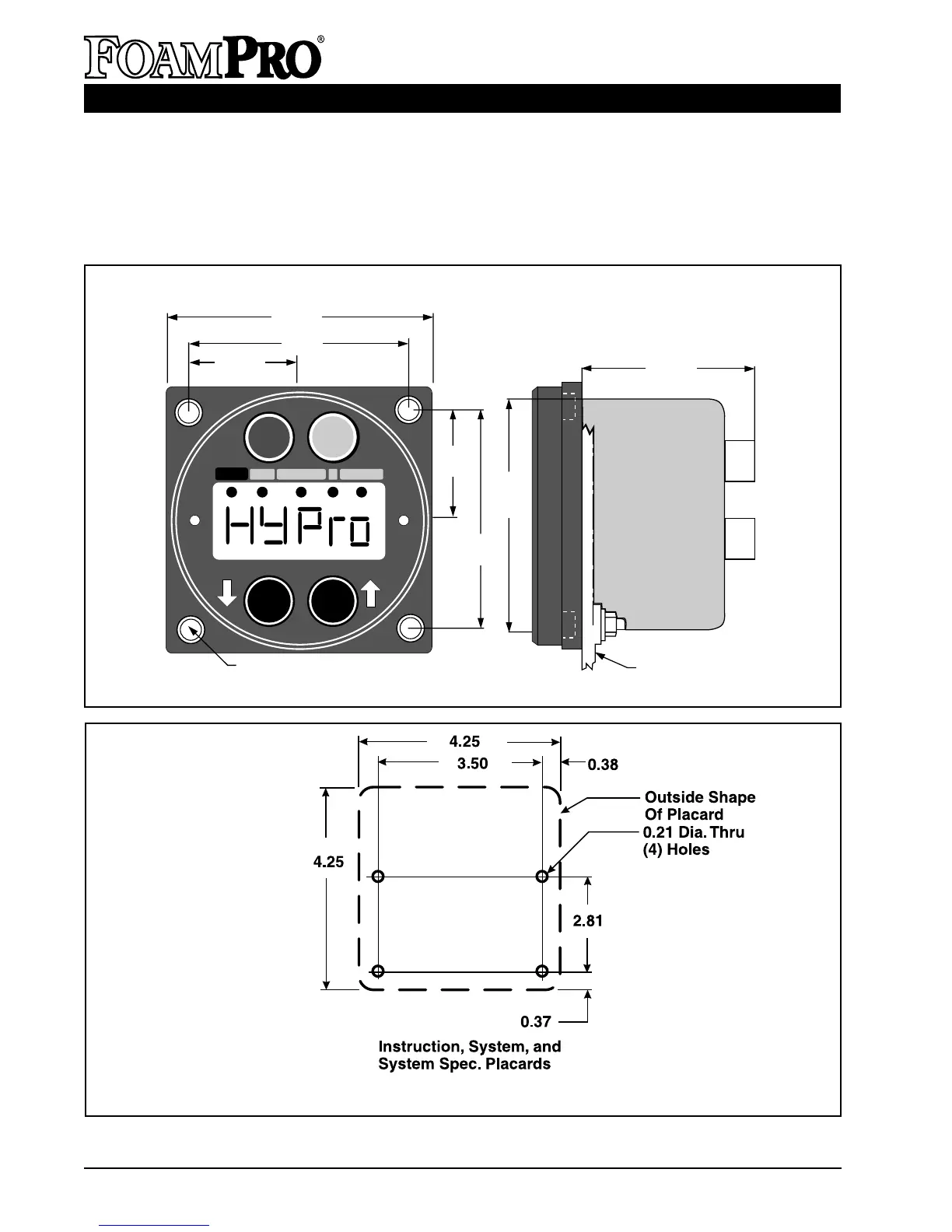 Cutout Dimensions for System Spec. Placard