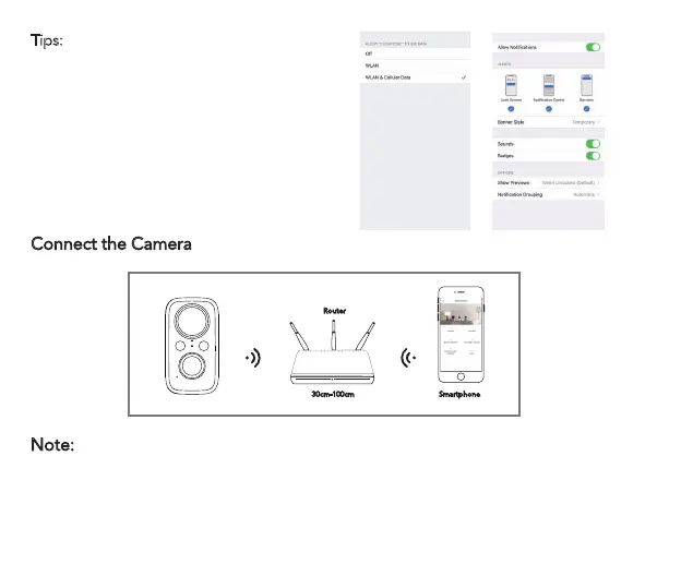 ·Put the camera and smart phone I to 3 feet (30 to 100cm) away from the router to set Wi-Fi.