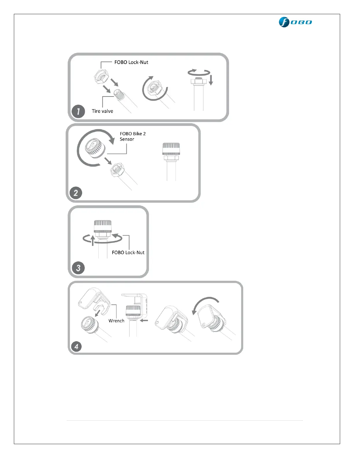 Step by step diagram to use FOBO TIRE 2 Lock Nut and wrench