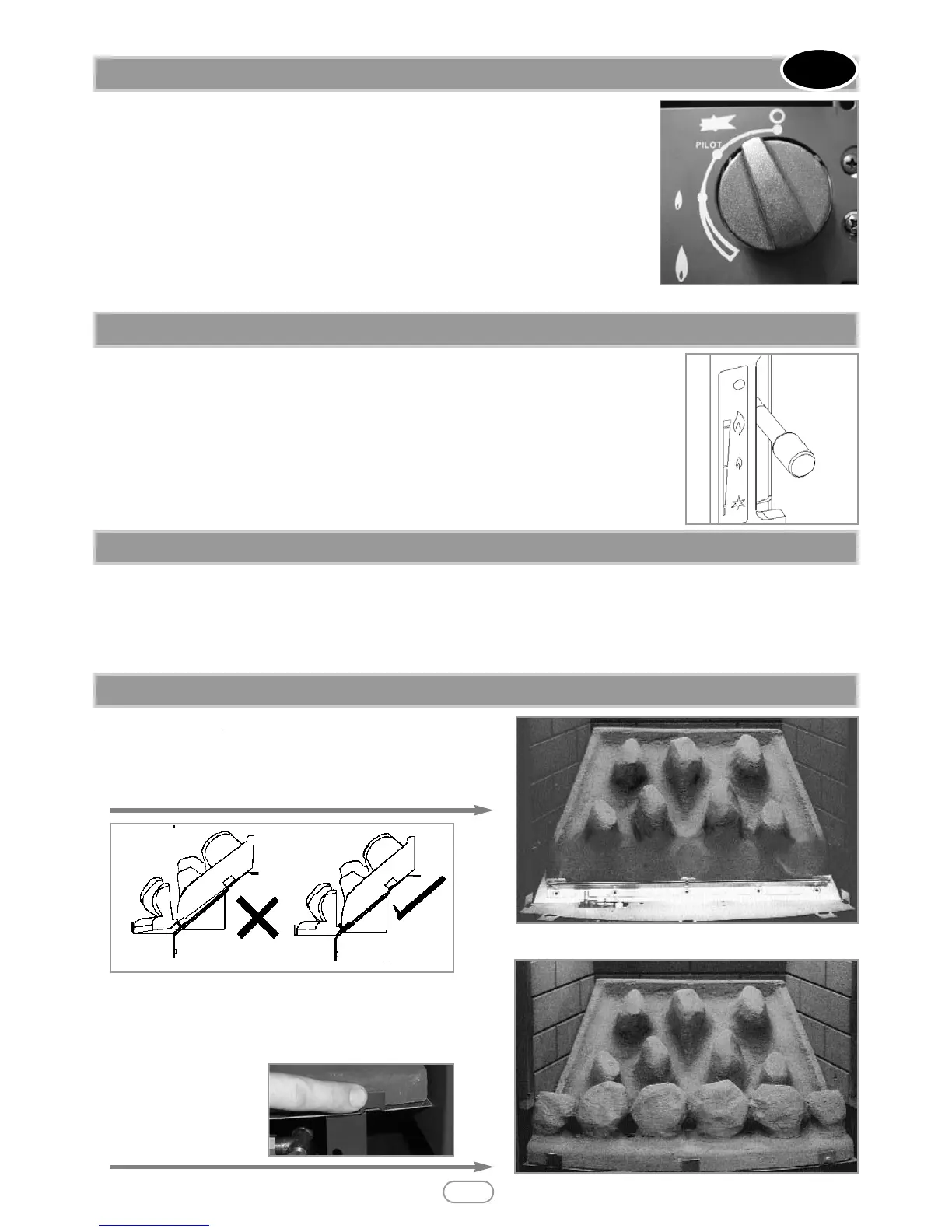 return to the pilot position and release. To turn the fire OFF, keep the knob pressed in, return to the off position and release.