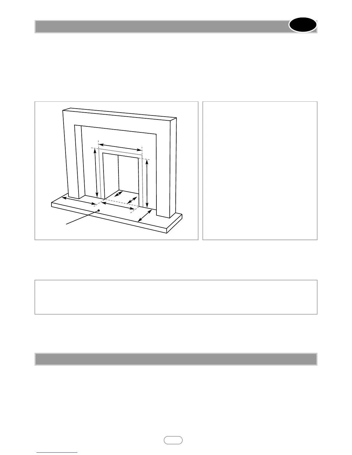 ‘F’. Non-combustible hearth must be a minimum of