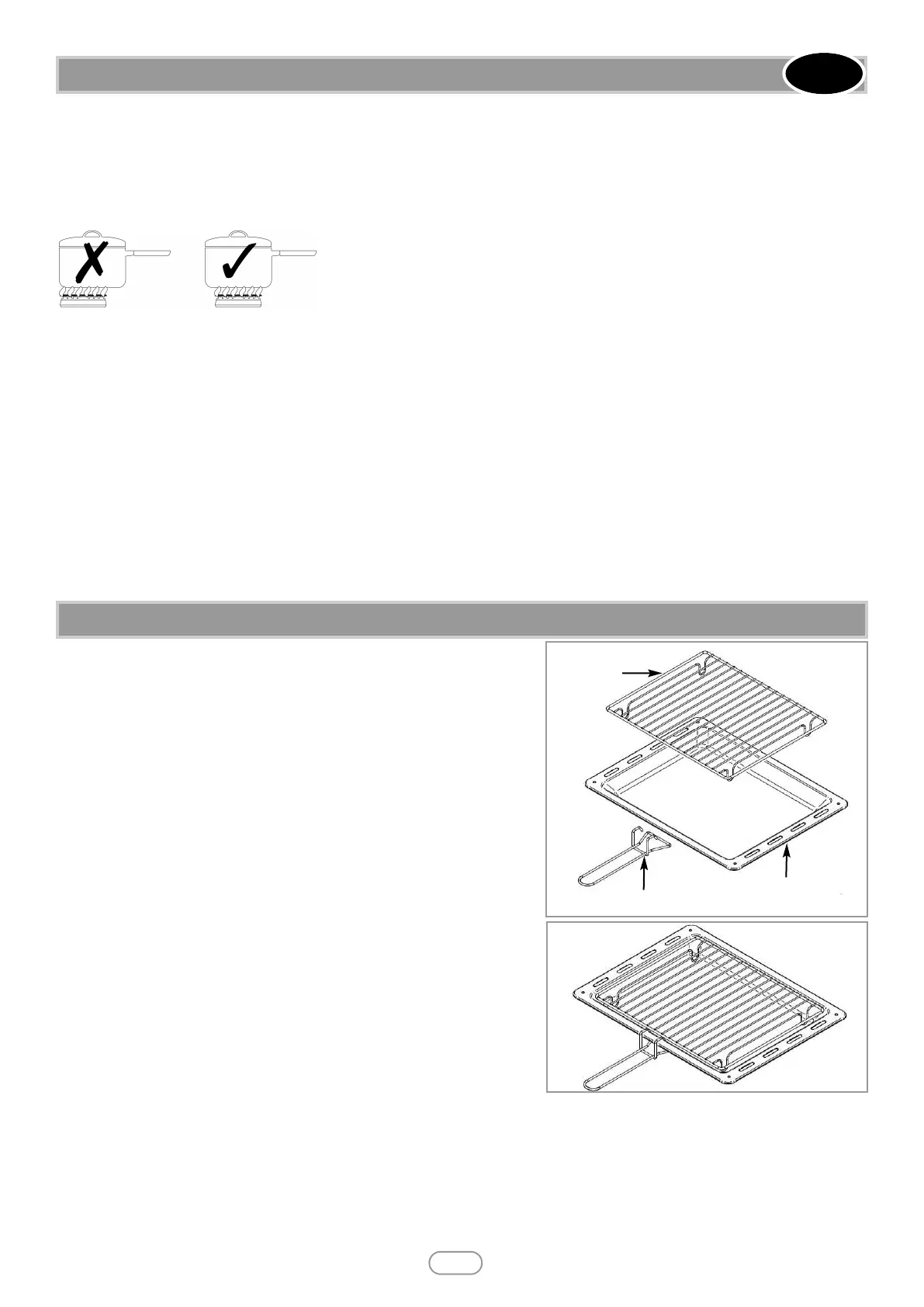 Pans: For optimum safety and performance, we recommend the use of flat bottomed pans with a base diameter of minimum