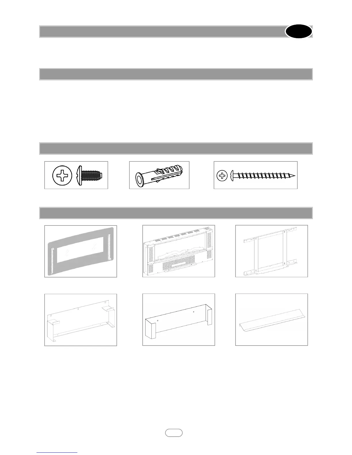 1. M4 x 8mm Screw x 12 2. Large Wall Anchor x 5 3. M5 x 50mm Screw x 5