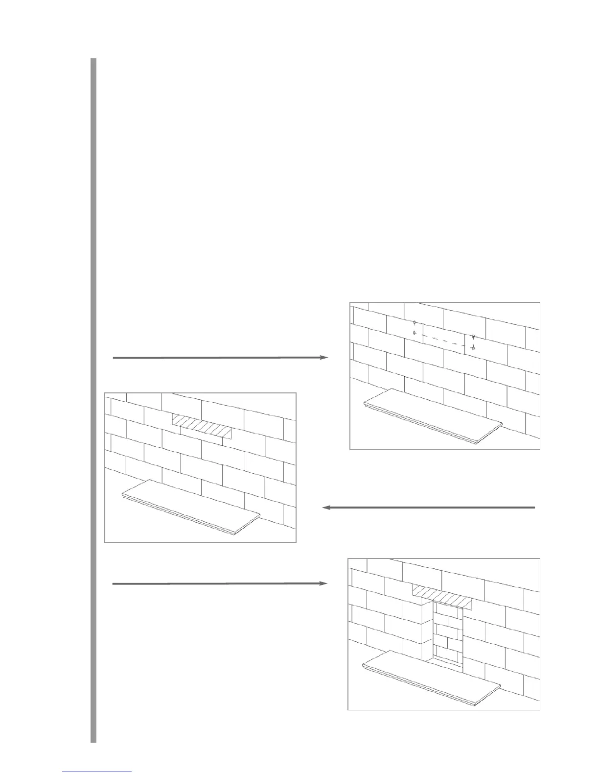 be fitted flush into the fireplace. The structural integrity of the wall must be maintained.