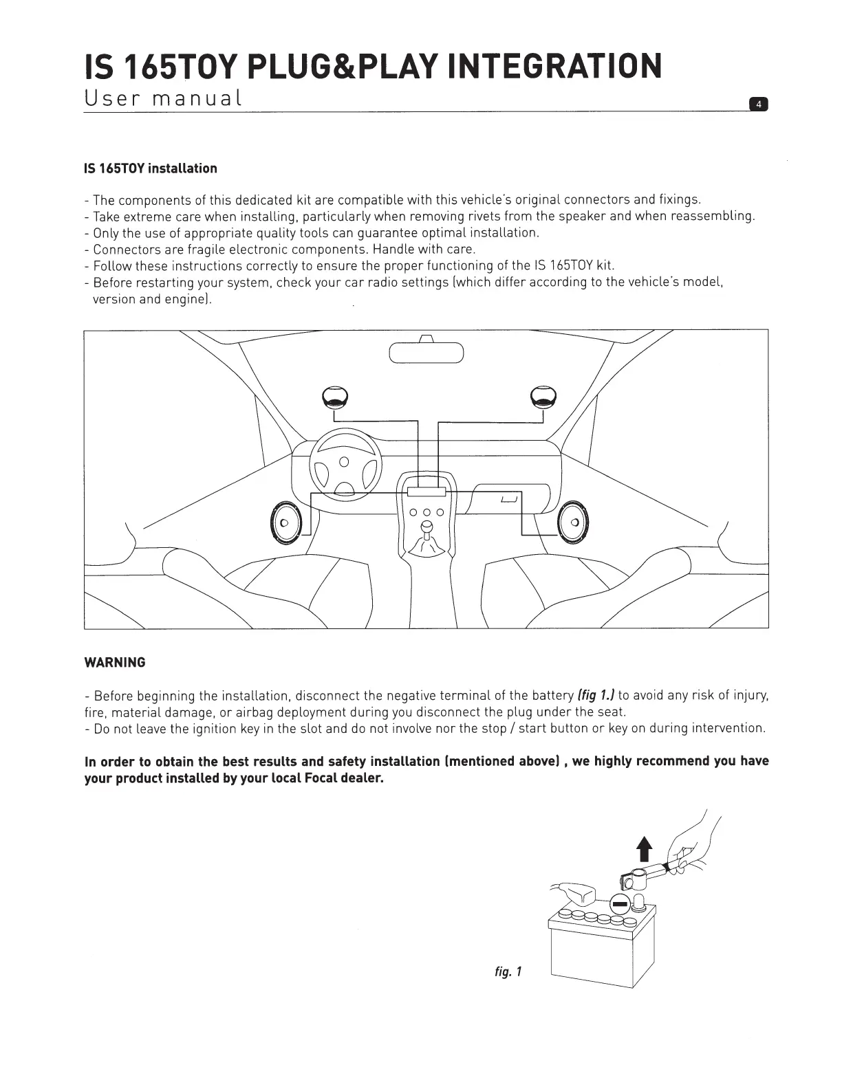 - Before beginning the installation, disconnect the negative