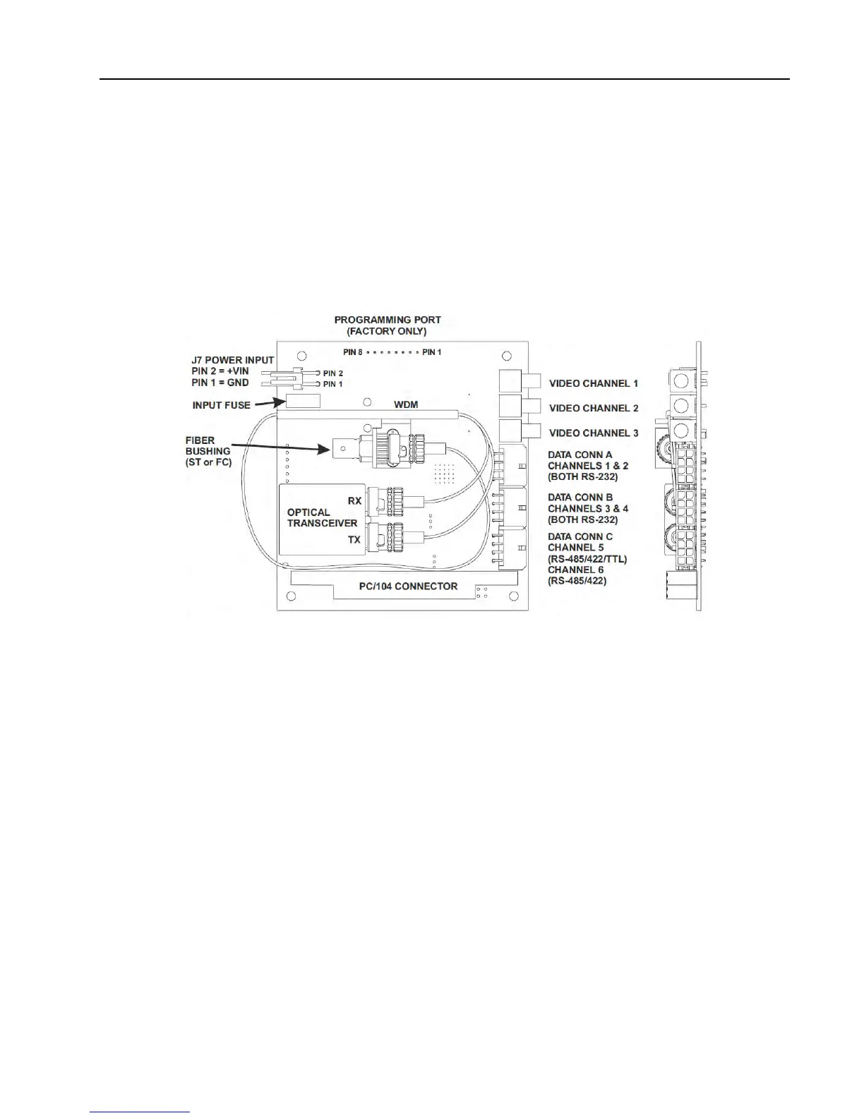 The 907-R is the remote half of the multiplexer motherboard set. Optical fiber routing may vary from assembly