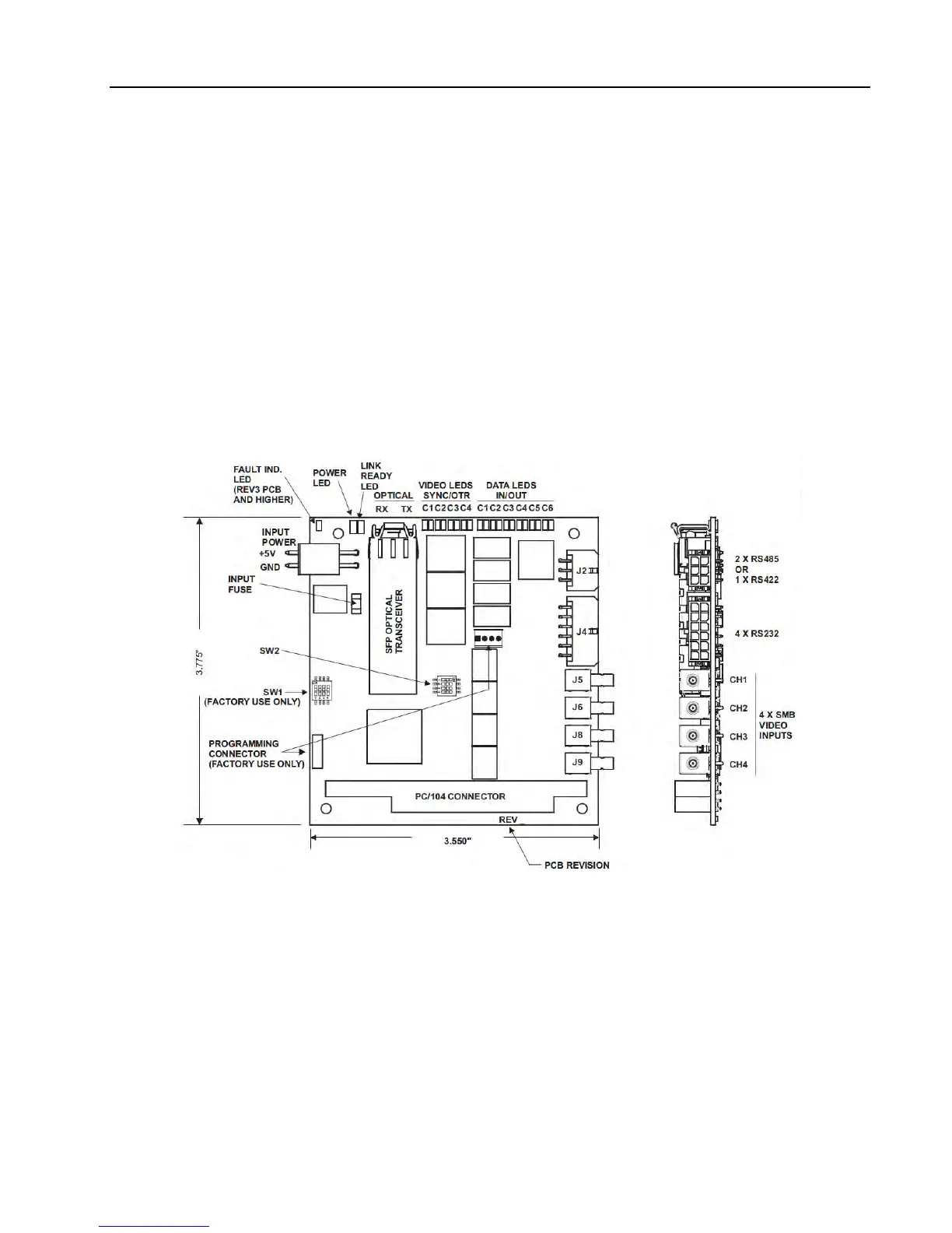 each video channel and Data I/O Activity for each on-board data channel. The Power LED is on when the