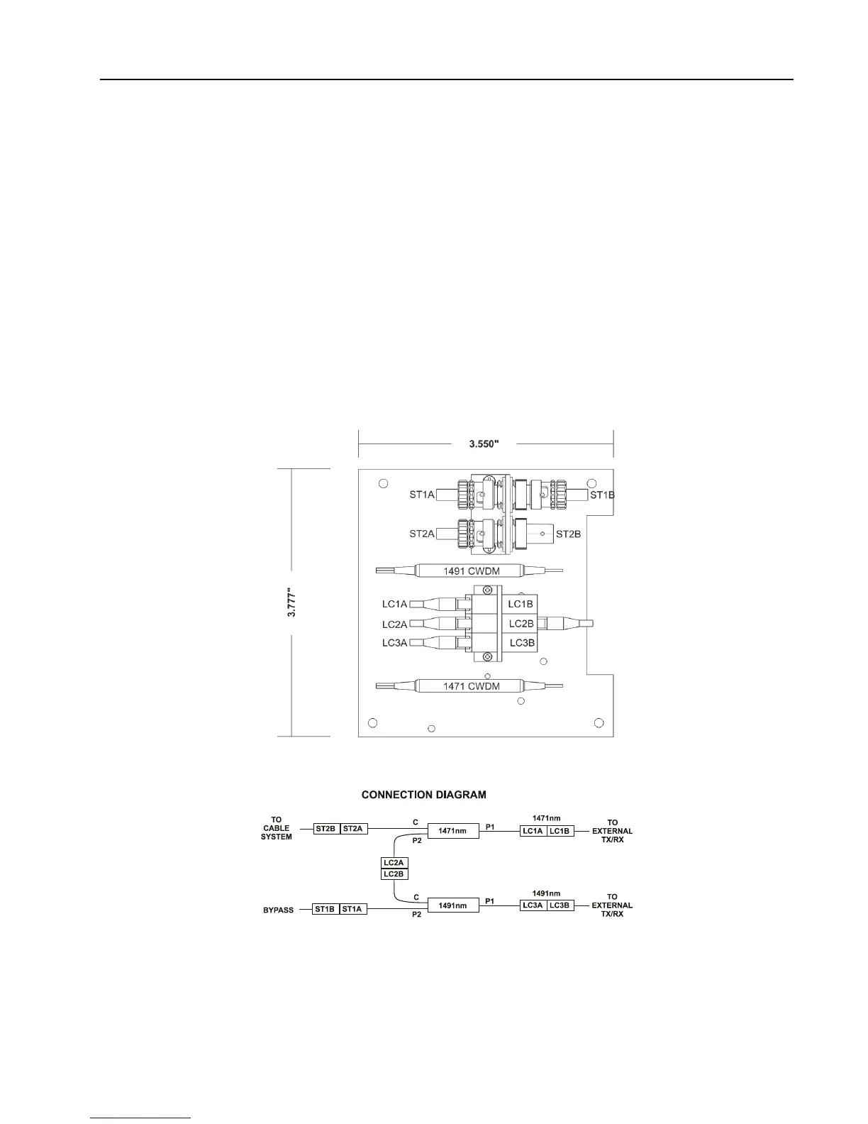 To daisy chain the 907-CWDM optics card, the bypass port ST1B should be connected to a 1310/1550 nm