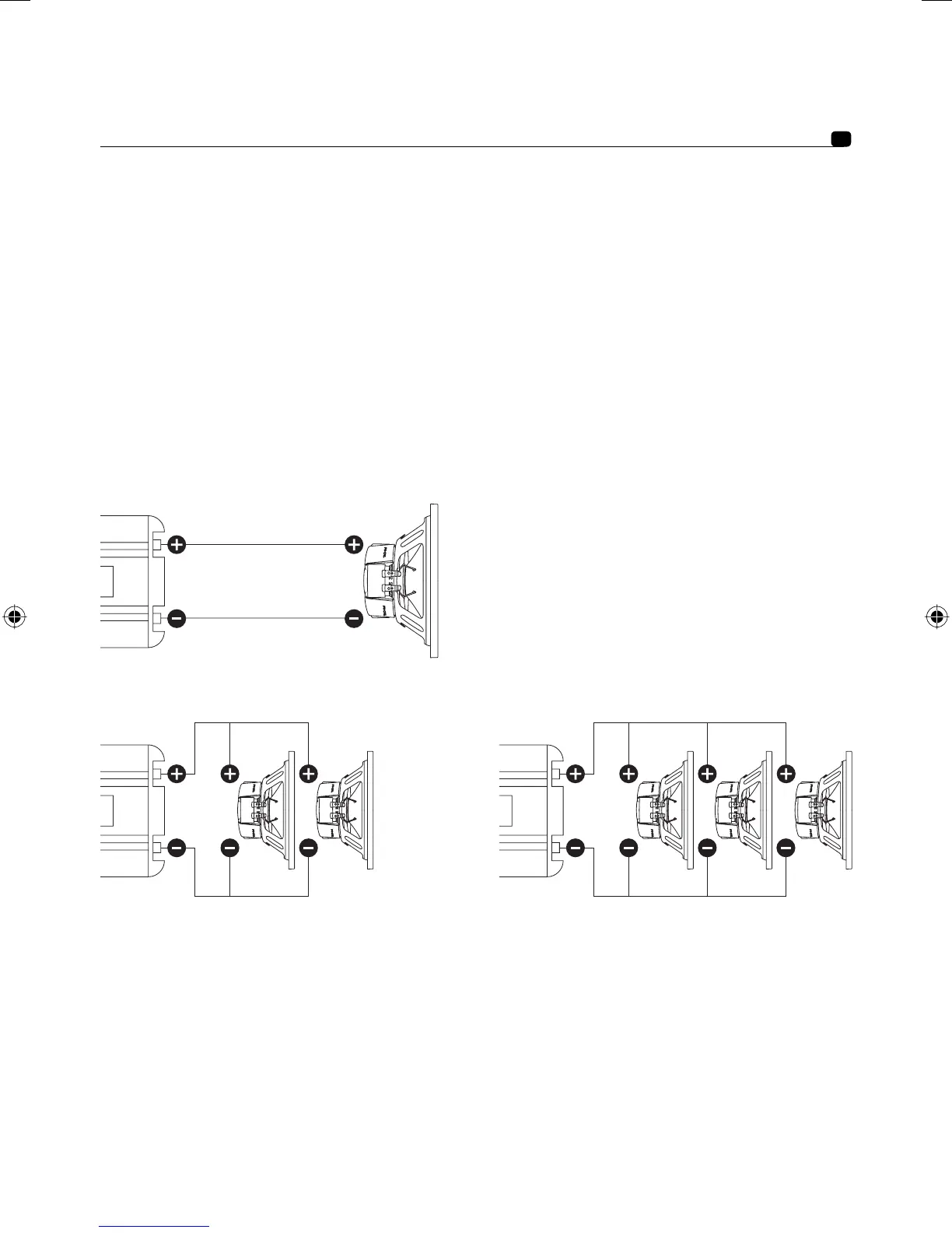 • 2 subwoofers : Z = R1 +R2 Z = 4 Ω + 4 Ω Z = 8 Ω