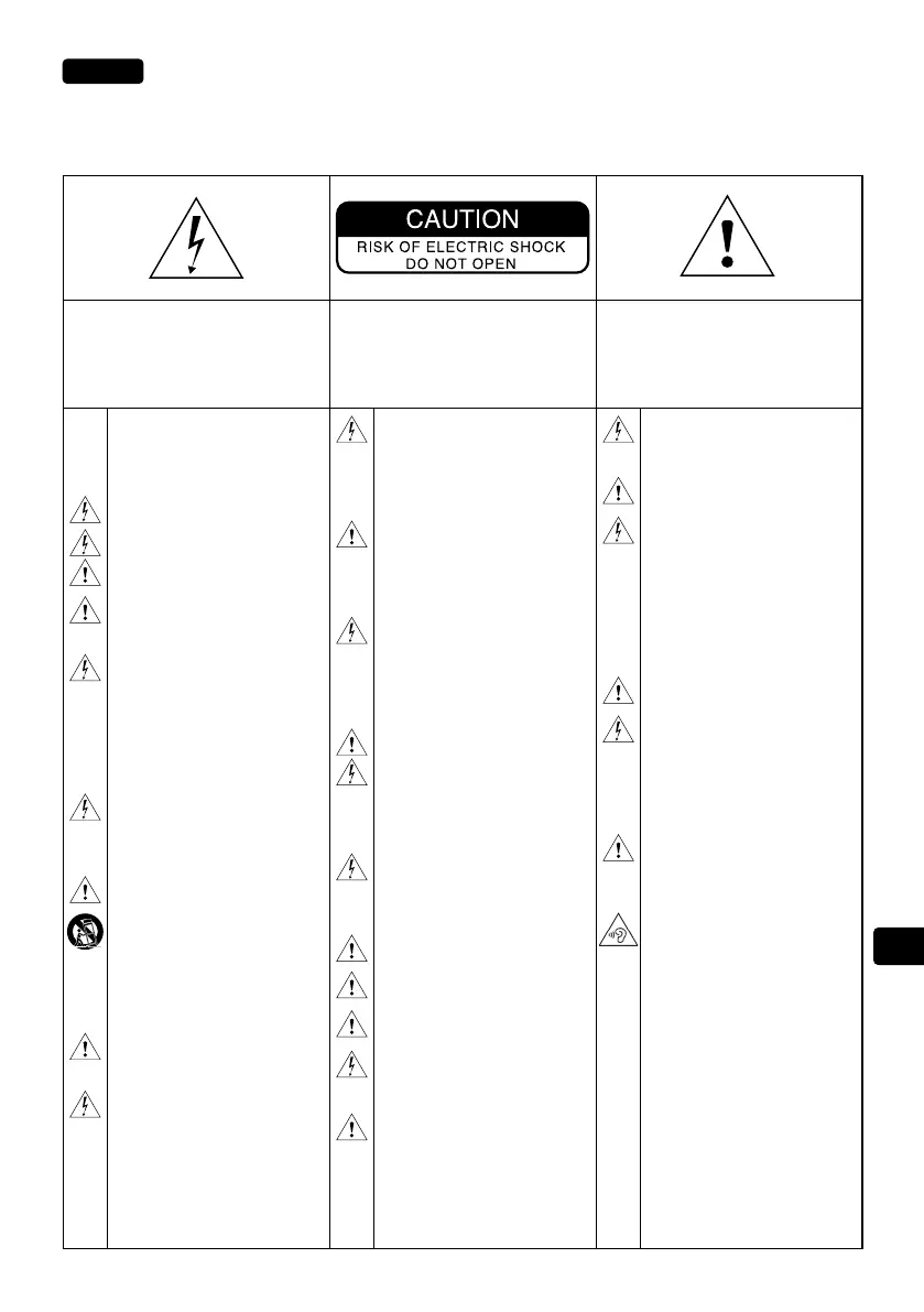 등변 삼각형 안의 번개 표시는 장치에 감전을