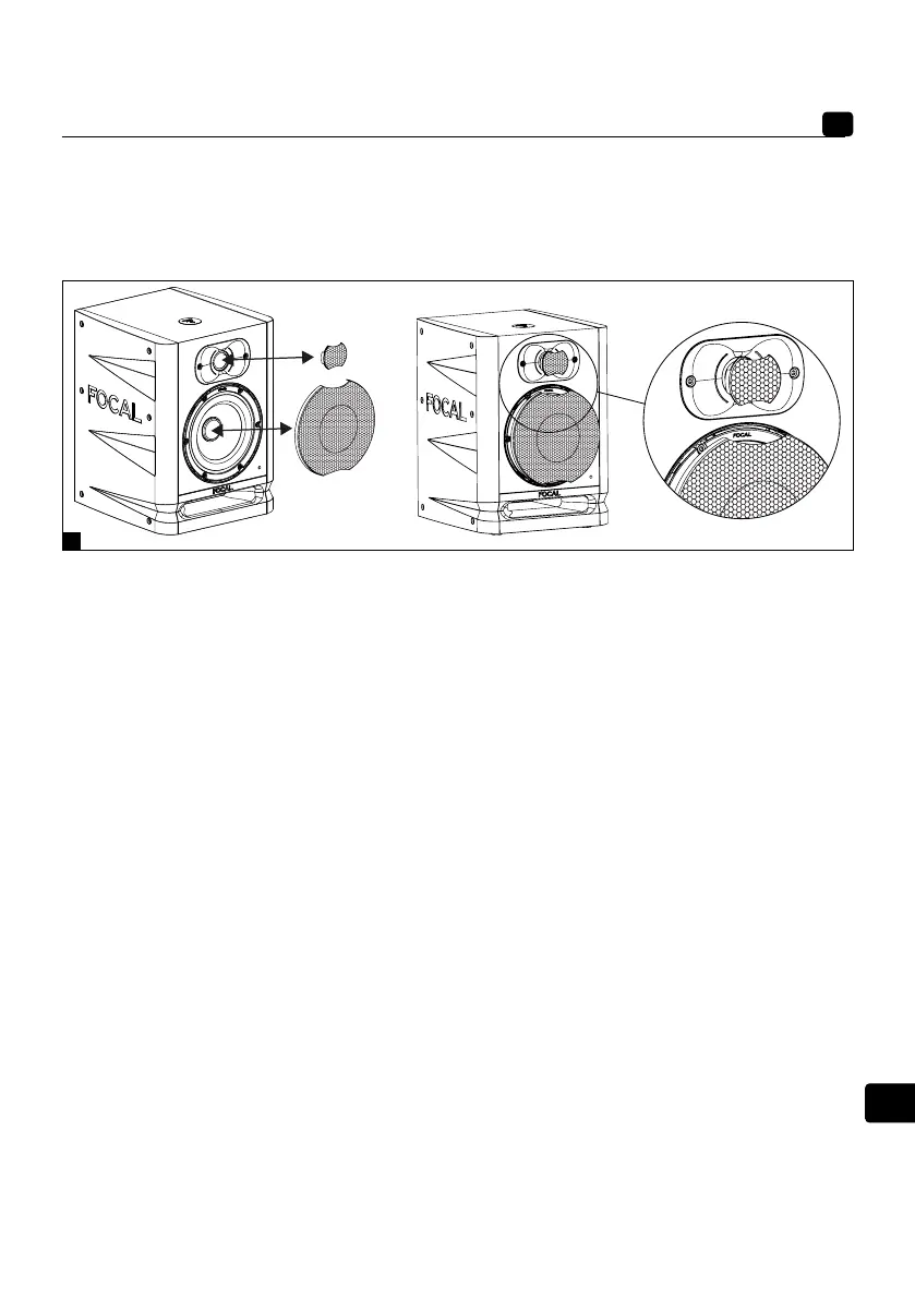 ALPHA EVO 揚聲器為高音喇叭與低音喇叭各提供一個網罩。若欲移除網罩,僅需使用手指拉動網罩上方與下方的缺口,請小心操作不要