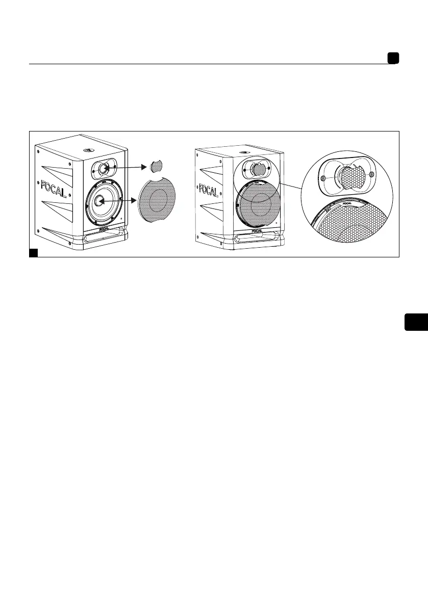 The ALPHA EVO loudspeakers are supplied with one grille for the tweeter and one grille for the woofer. To remove a grille,