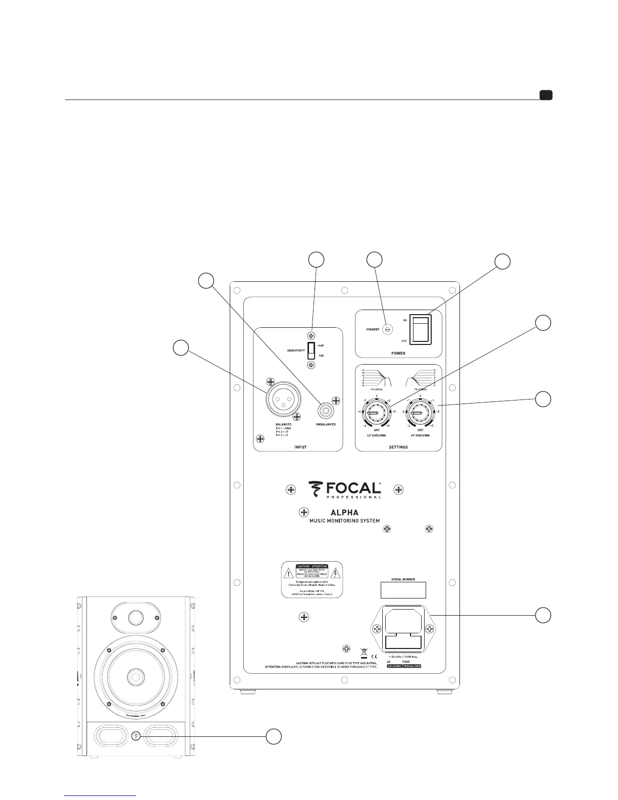 La DEL située sur le panneau frontal est éteinte lorsque l’enceinte est en position OFF. Elle est allumée lorsque