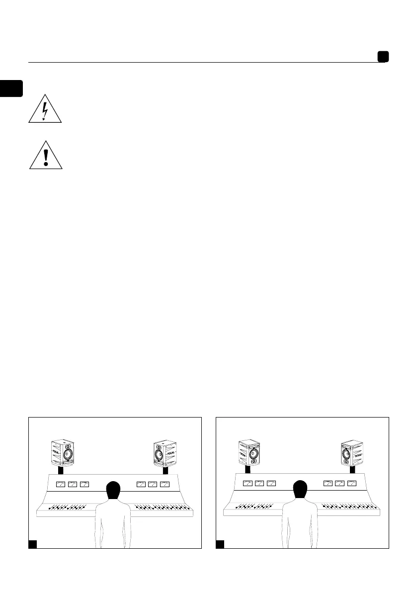 from the listener, pointing towards him or her. They can be perfectly positioned above a mixing desk or placed on suitable
