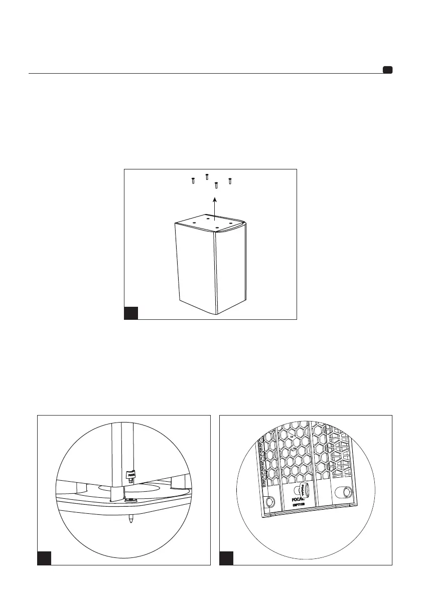 les 4 vis qui sont situées sous l’enceinte (fig. K), puis posez l’enceinte sur le pied. Fixez solidement l’enceinte sur son