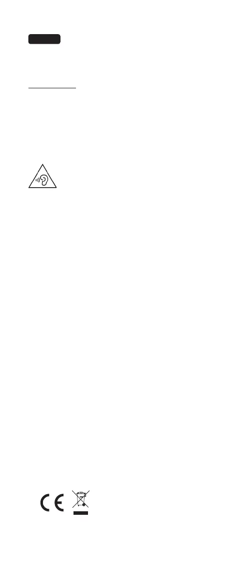 5) 收听高功率耳机会损害用户耳朵并引起听力受损(临时或永久性耳