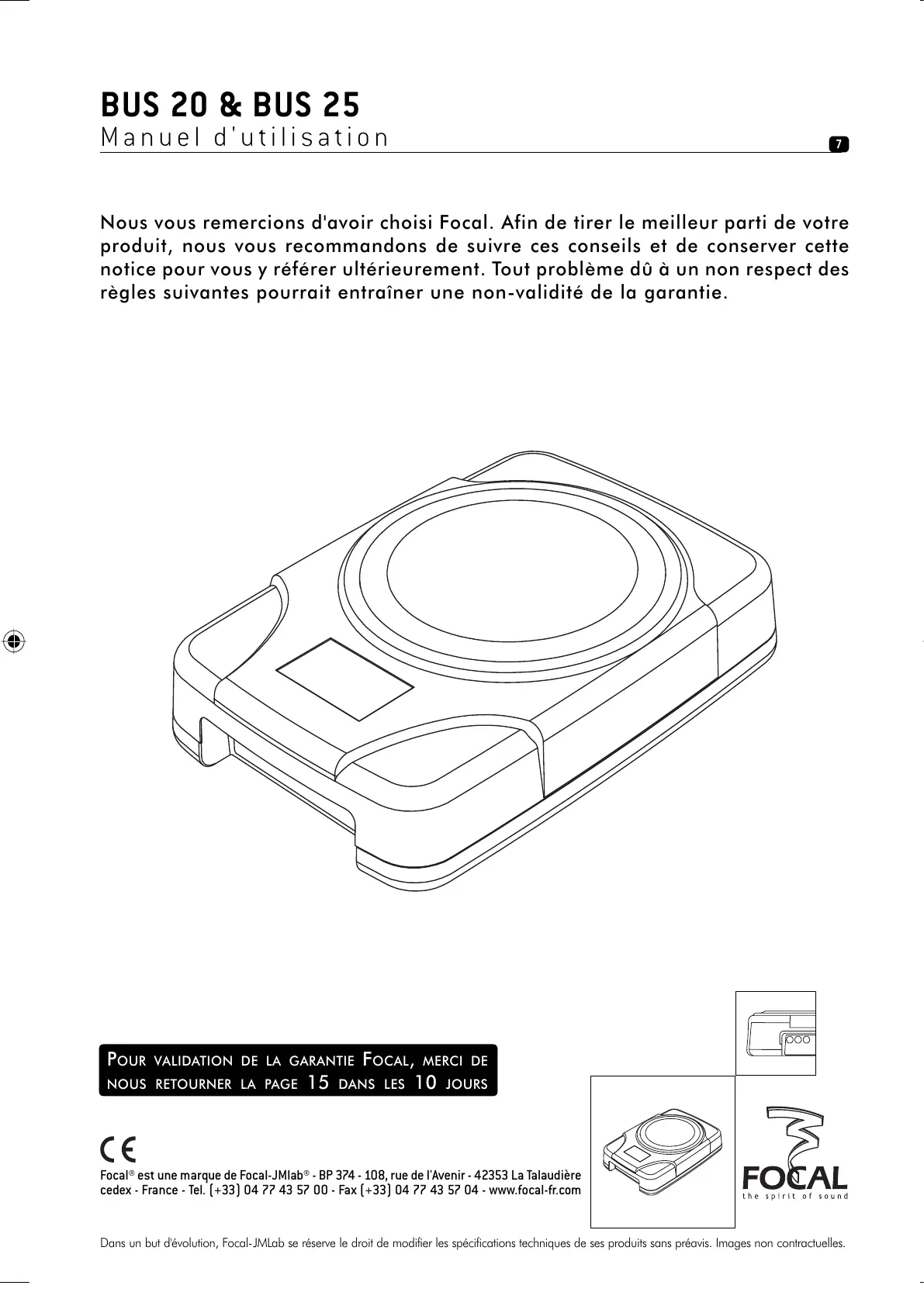 cedex - France - Tel. (+33) 04 77 43 57 00 - Fax (+33) 04 77 43 57 04 - www.focal-fr.com