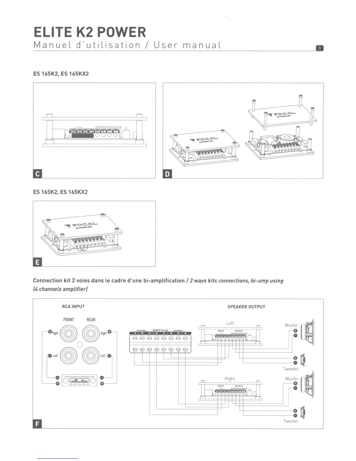 Focal ELITE K2 POWER - 2-channel Bi-Amplification Connections; ES 165 K2, ES 165 KX2 (4-Channel Amp)