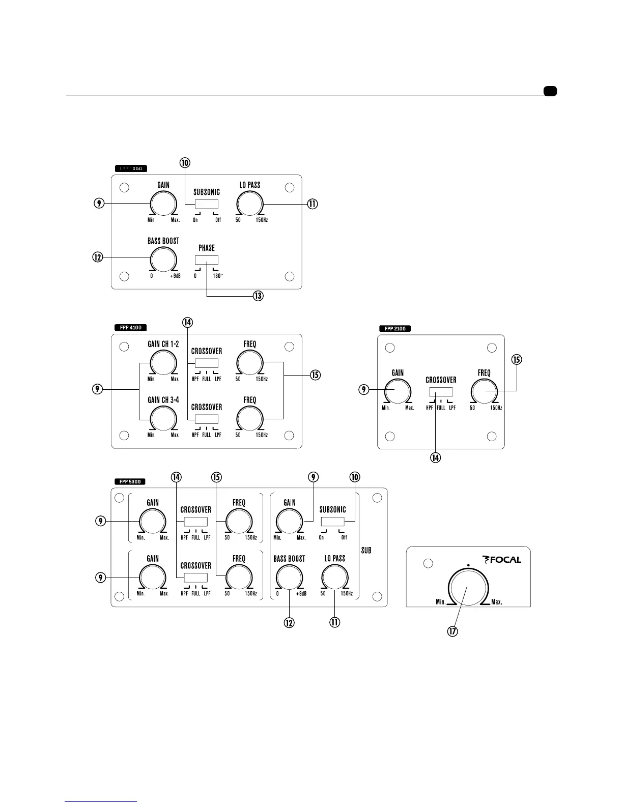 Focal FPP1000 - Amplifier Control Interfaces; Gain and Level Adjustment; Crossover and Frequency Controls; Phase and Mode Controls