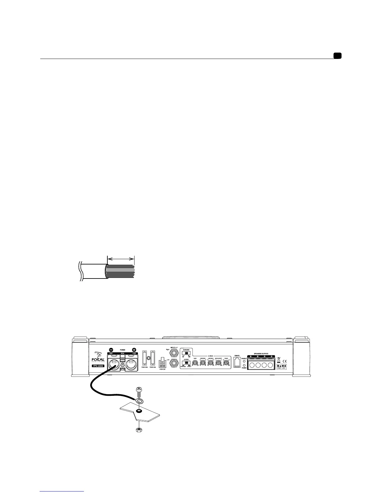 étamer. Visser fermement le câble sur la borne GND de l’amplificateur. Etamer l’autre extrémité puis sertir ou