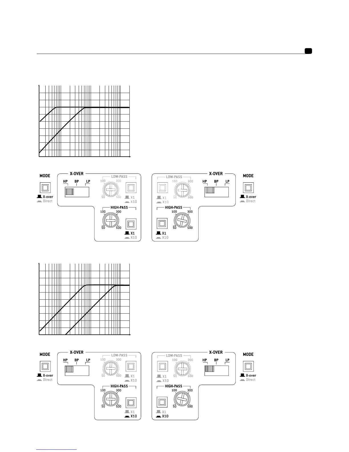 Réglage du passe-haut entre 50 et 500 Hz