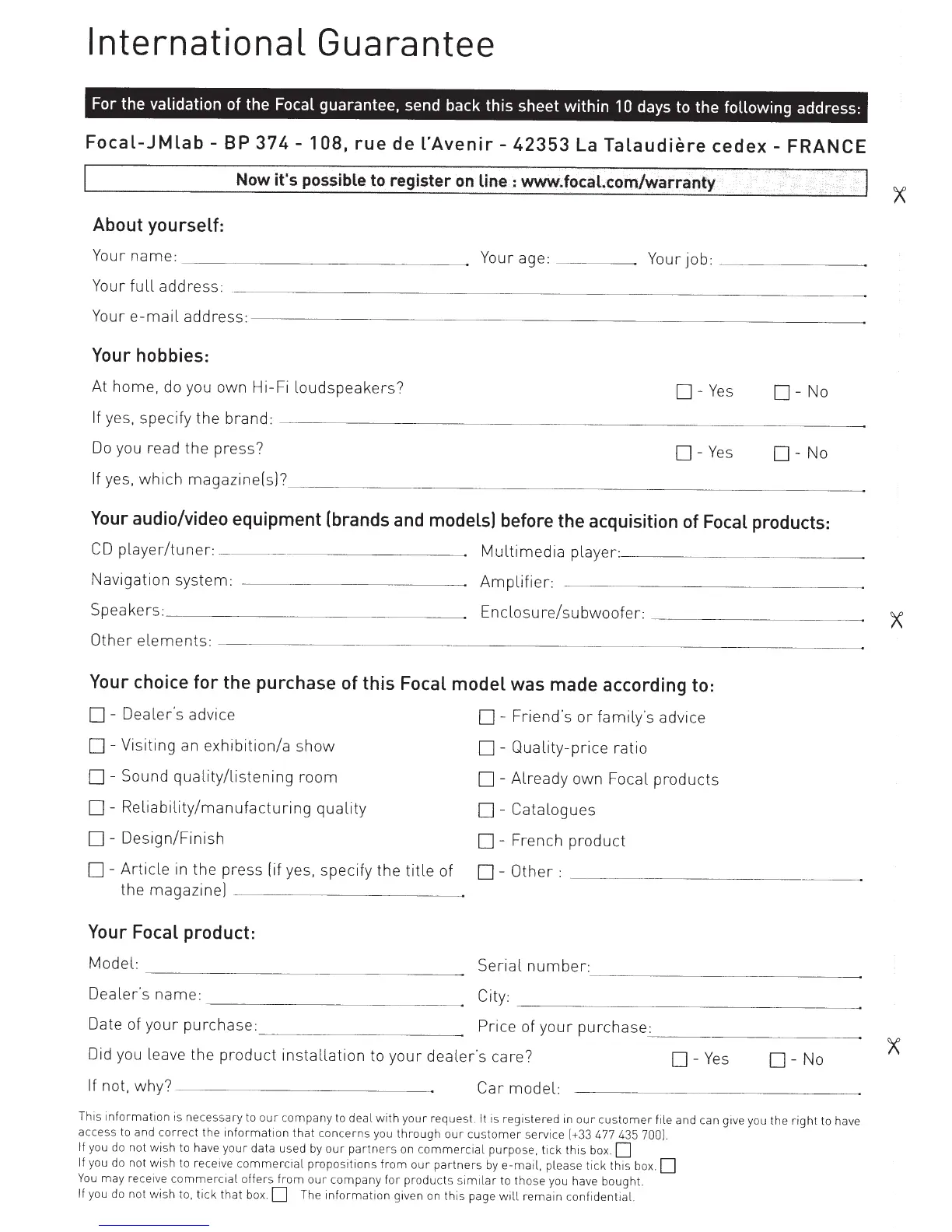 Focal FPX - Warranty and Registration; Guarantee Validation Process