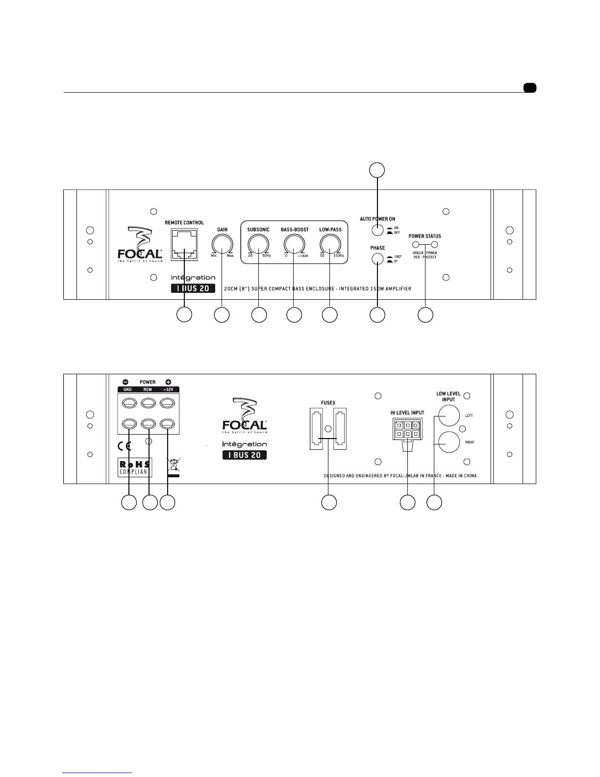 Focal IBUS 20 - Amplifier Rear Panel Layout; Controls and Input;Output Terminals