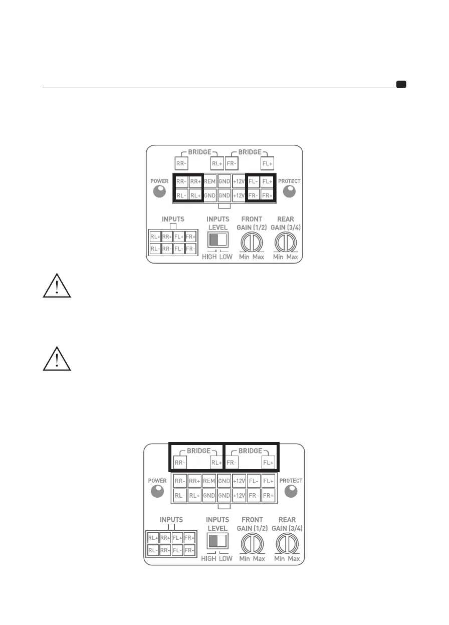Pour utiliser le IMPULSE 4.320 en mode bridgé et ainsi doubler la puissance disponible, respectez les connexions et