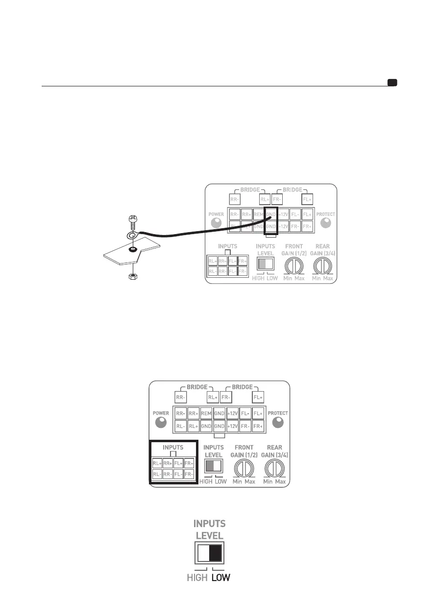 Schließen Sie das andere Ende an die Anschlussleiste INPUTS des Verstärkers an.(Abb. 3)