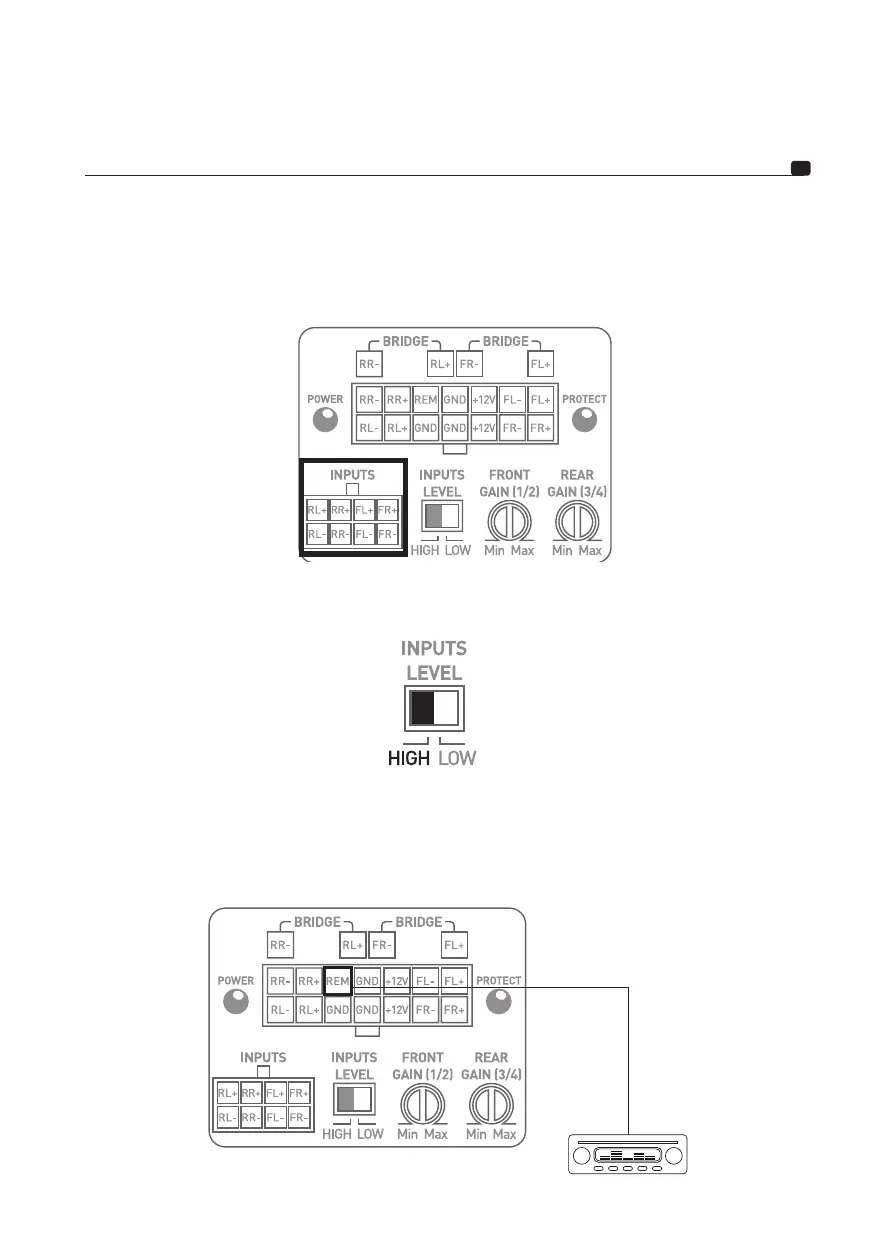 Stellen Sie den Eingangswahlschalter ( INPUTS LEVEL) auf HIGH (hoch) (Abb. 6).