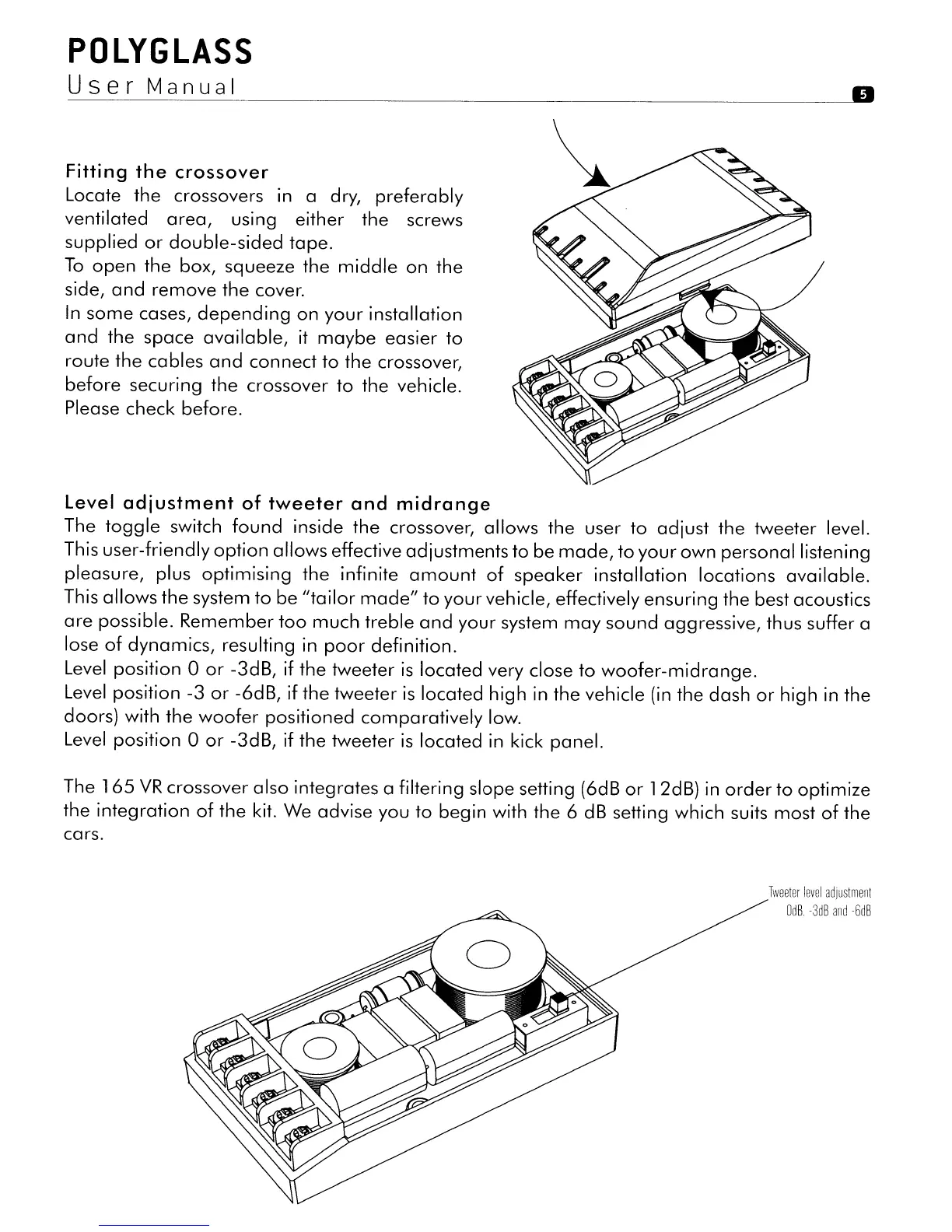 Focal Polyglass - Crossover Installation and Adjustment; Fitting the Crossover; Tweeter Level and Filter Slope Settings