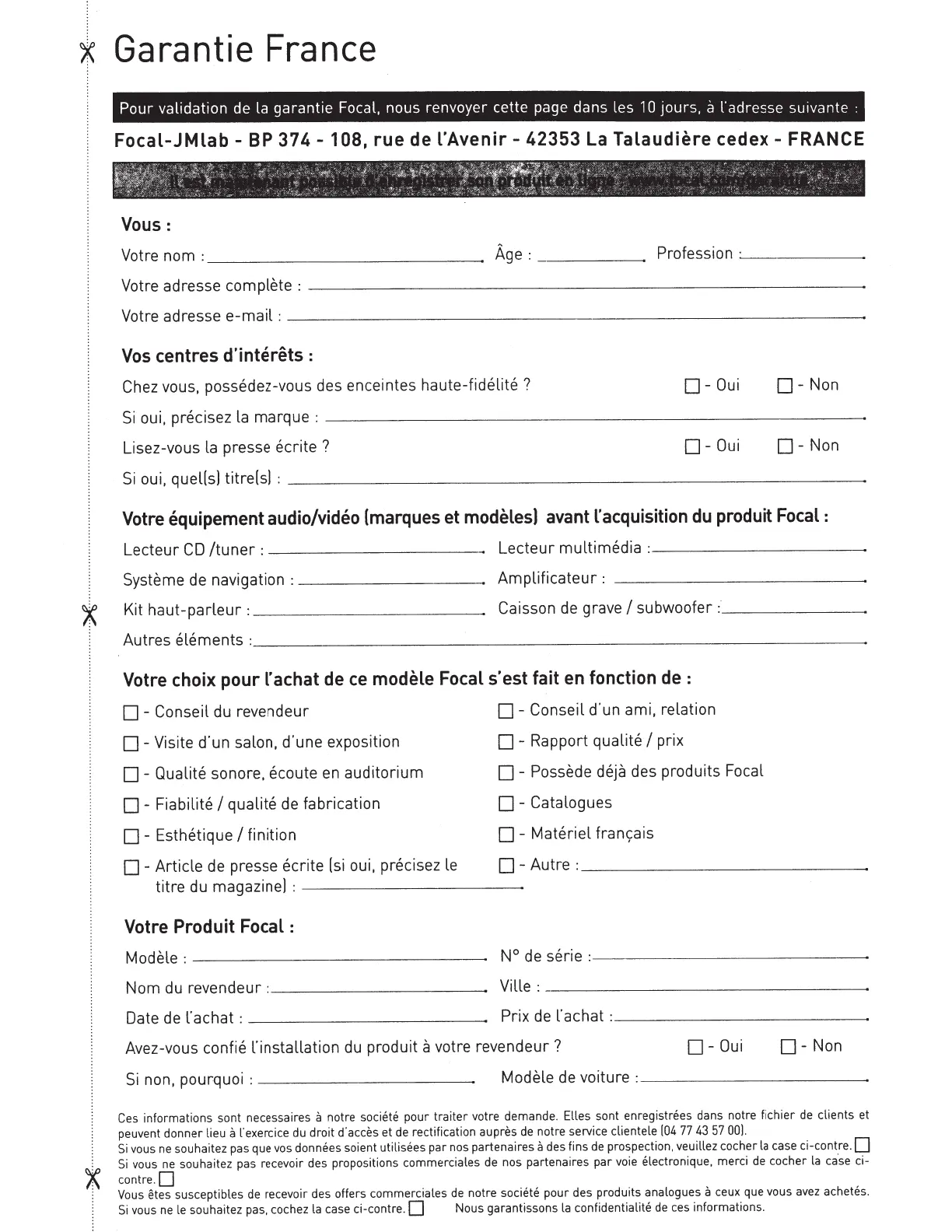 souhaitez pas recevoir des propositions commerciales de nos partenaires par voie electronique, merci