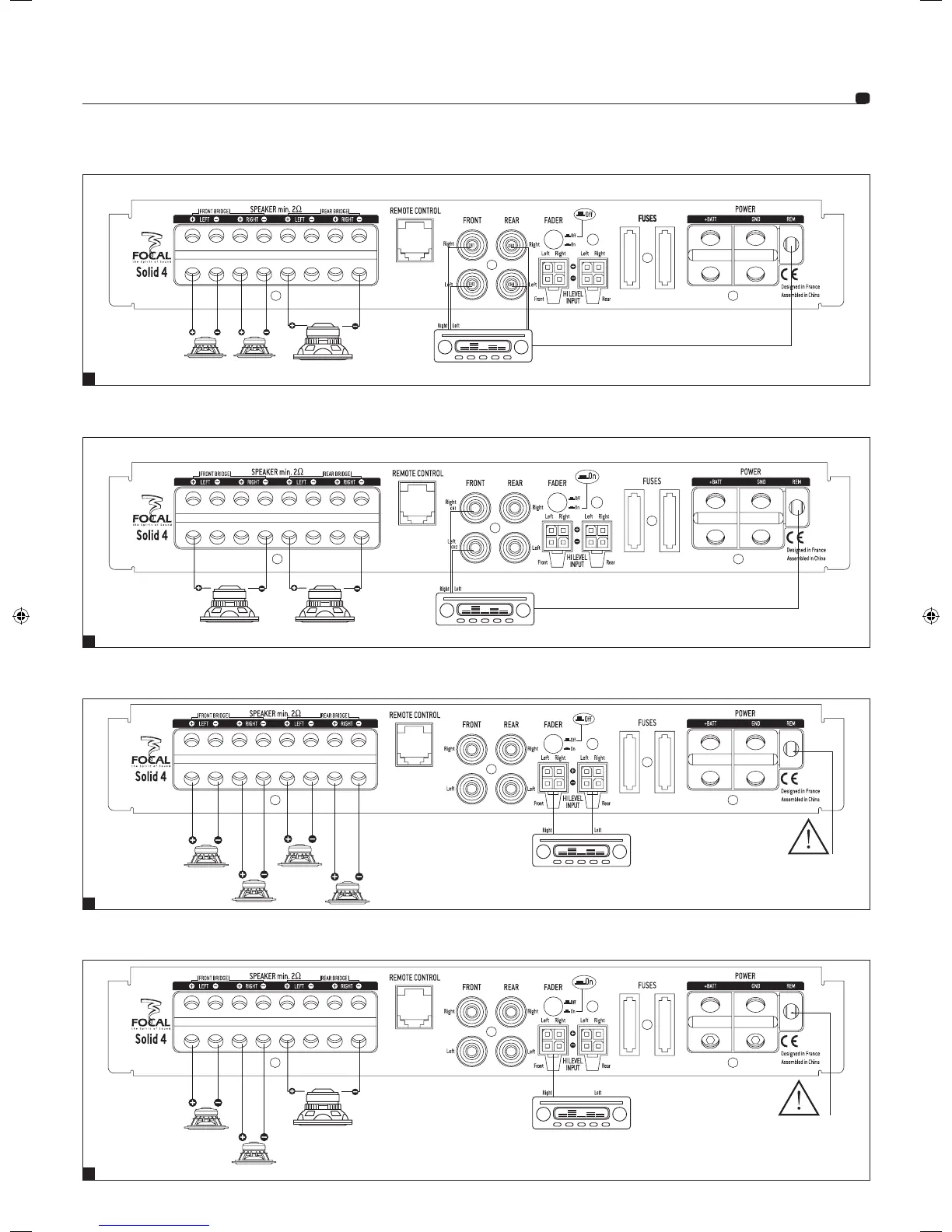 Câblage Solid 4 : 2 entrées haut niveau, 4 haut-parleurs / Solid 4 : 2 high level input, 4 speakers