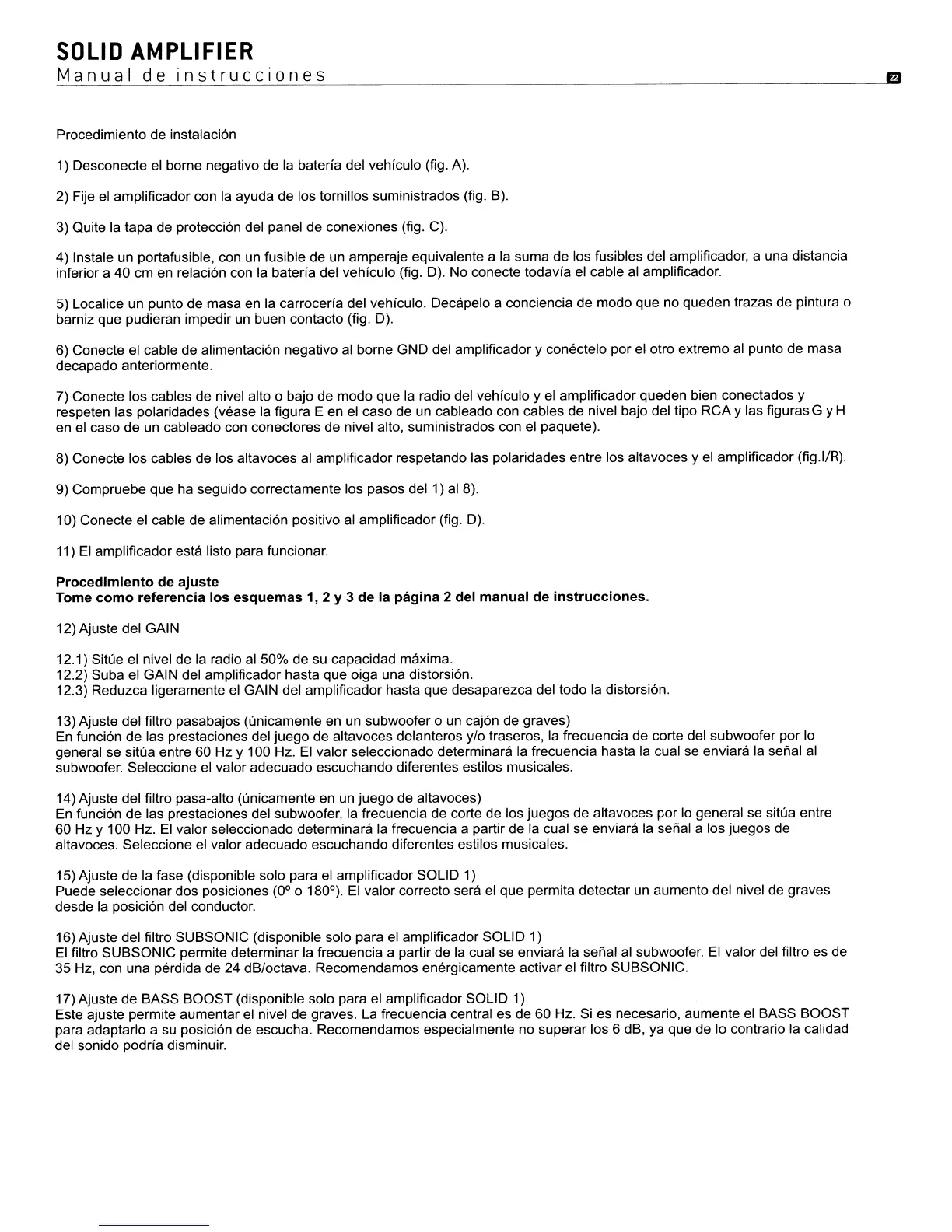 bateria del vehiculo (fig. D). No conecte todavia el cable al amplificador.