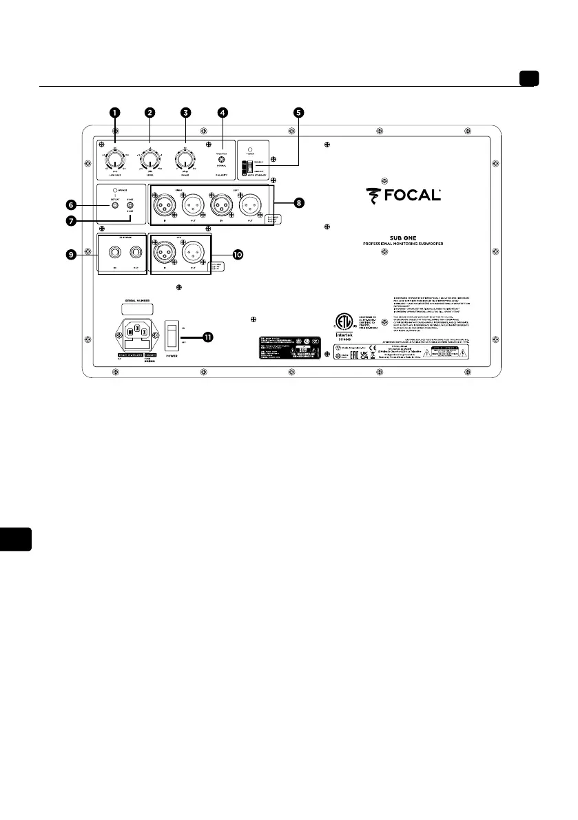 与极性开关(4)关联的此相位调节电位器将在必要时补偿SUB ONE相对于监听器的定位。根据与低音炮