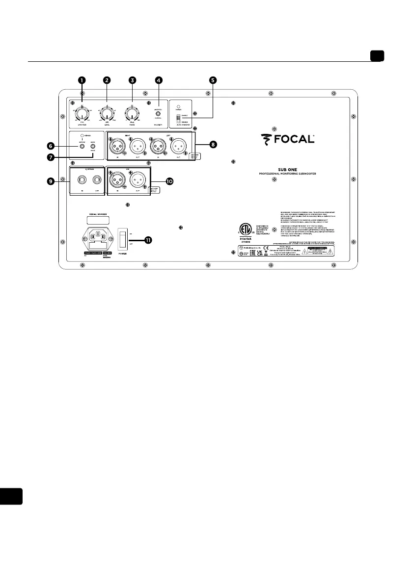 極性(4)を設定する位相調整ポテンショメーターを使用することで、モニターの位置からみた本製品の位