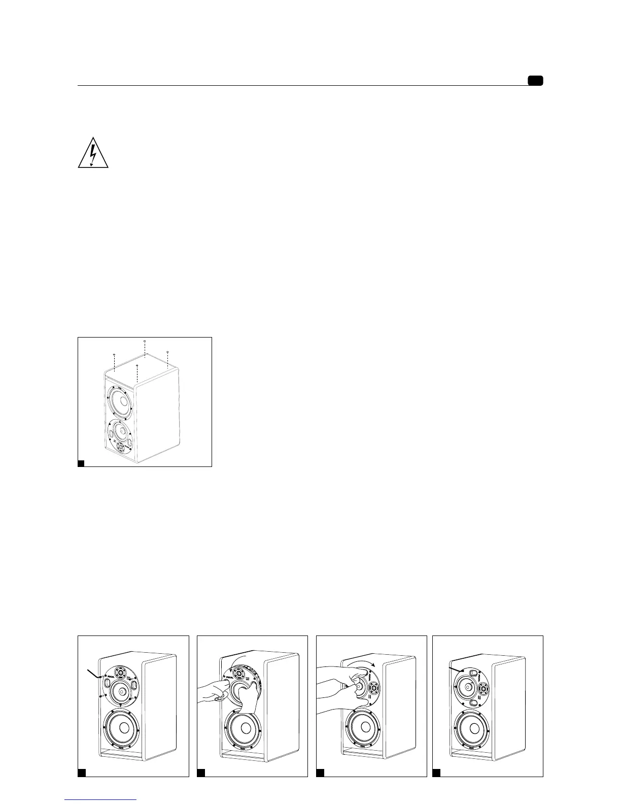 1) Keep the protective grille on the tweeter to keep it protected during this manoeuvre.