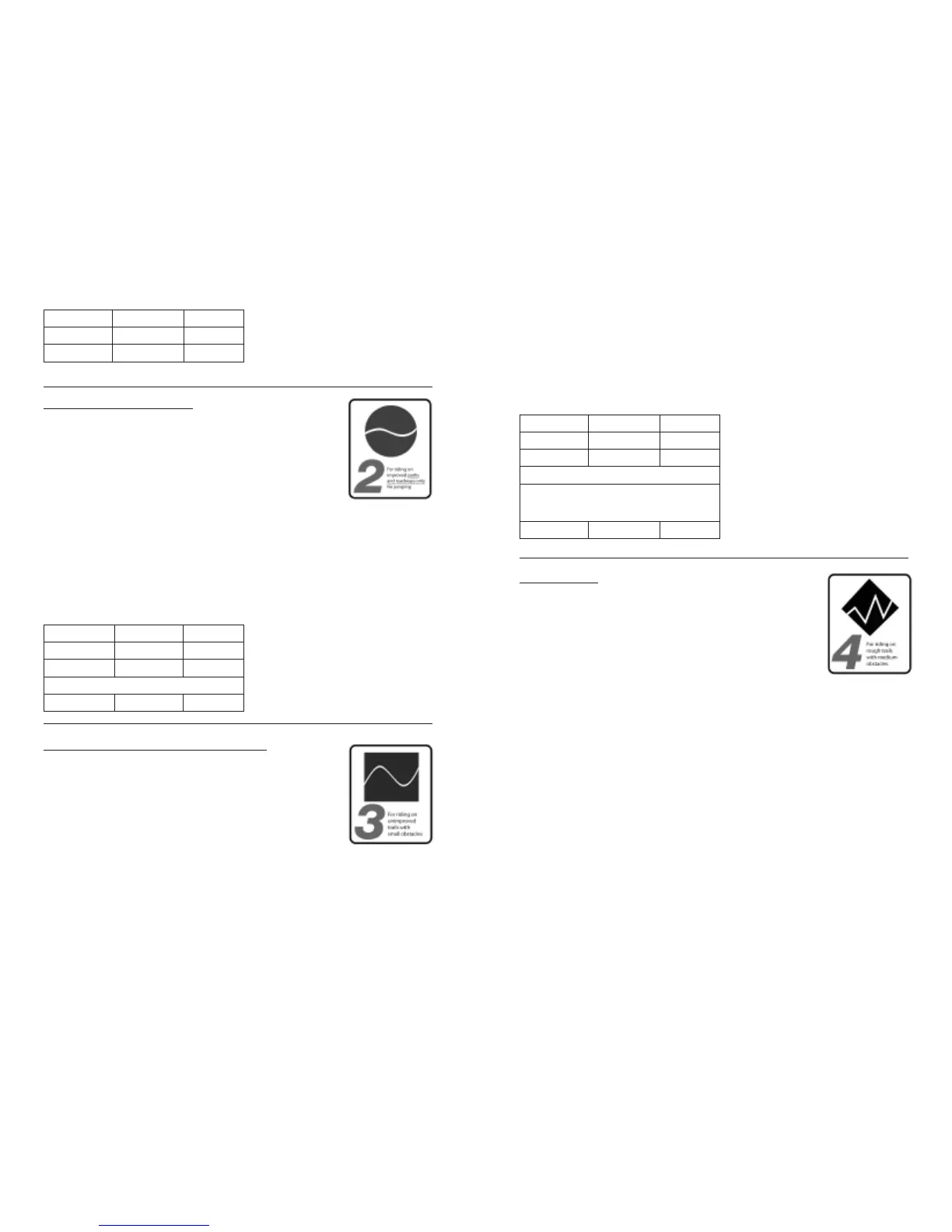 rocks, loose surfaces and hard pack and depressions). Cross-country and