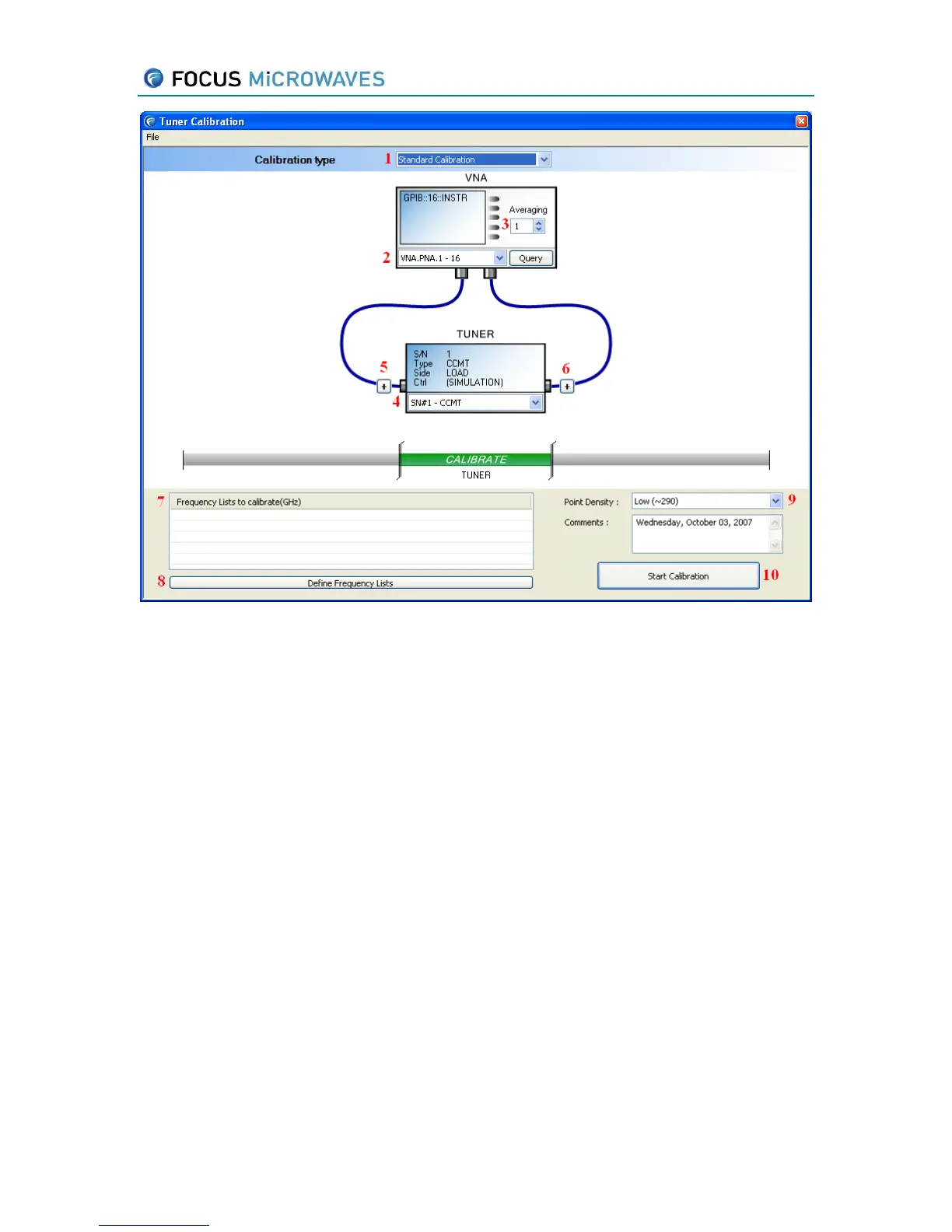 1. Select the Calibration type: For standalone tuner calibration use Standard Calibration.