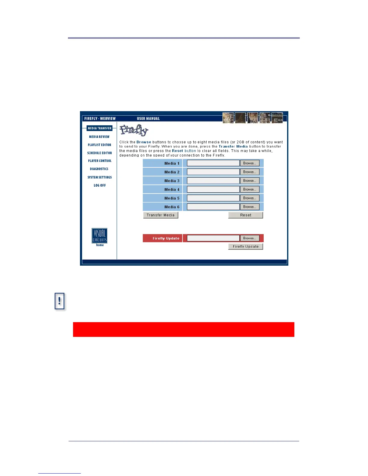 network to the Firefly. Up to six media files can be transferred at