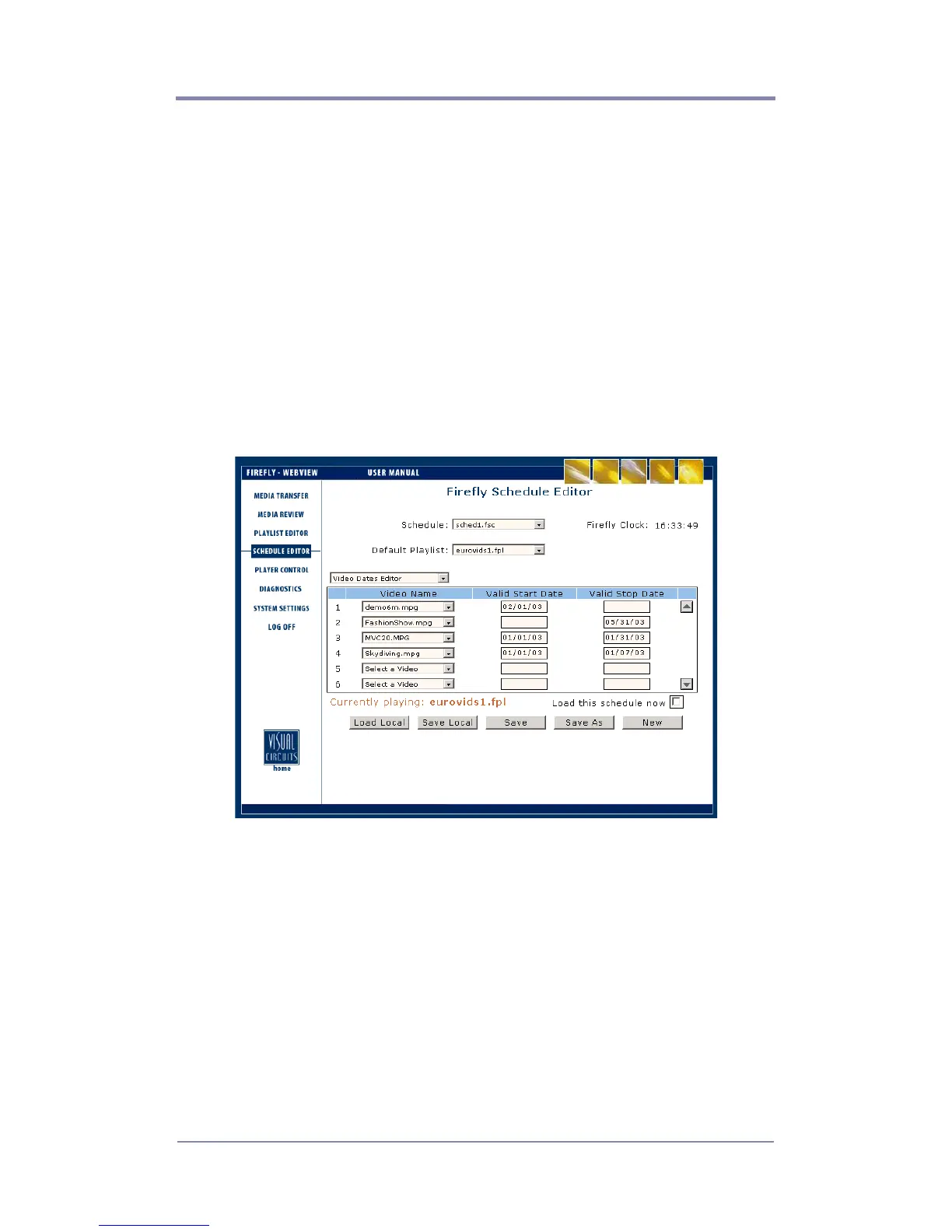 Figure 21. Schedule Editor - Video Dates Editor Page