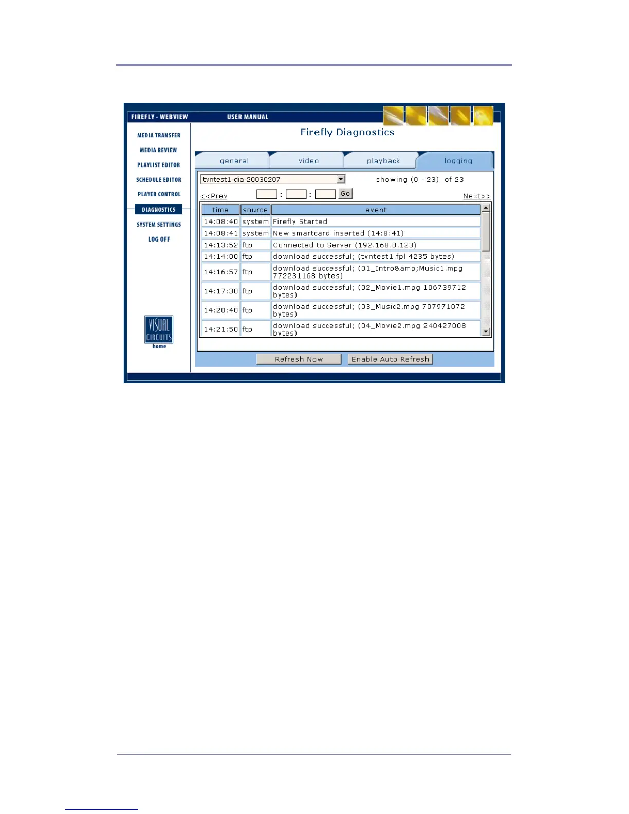 Figure 27. Diagnostics - Logging Page (Diagnostic log)